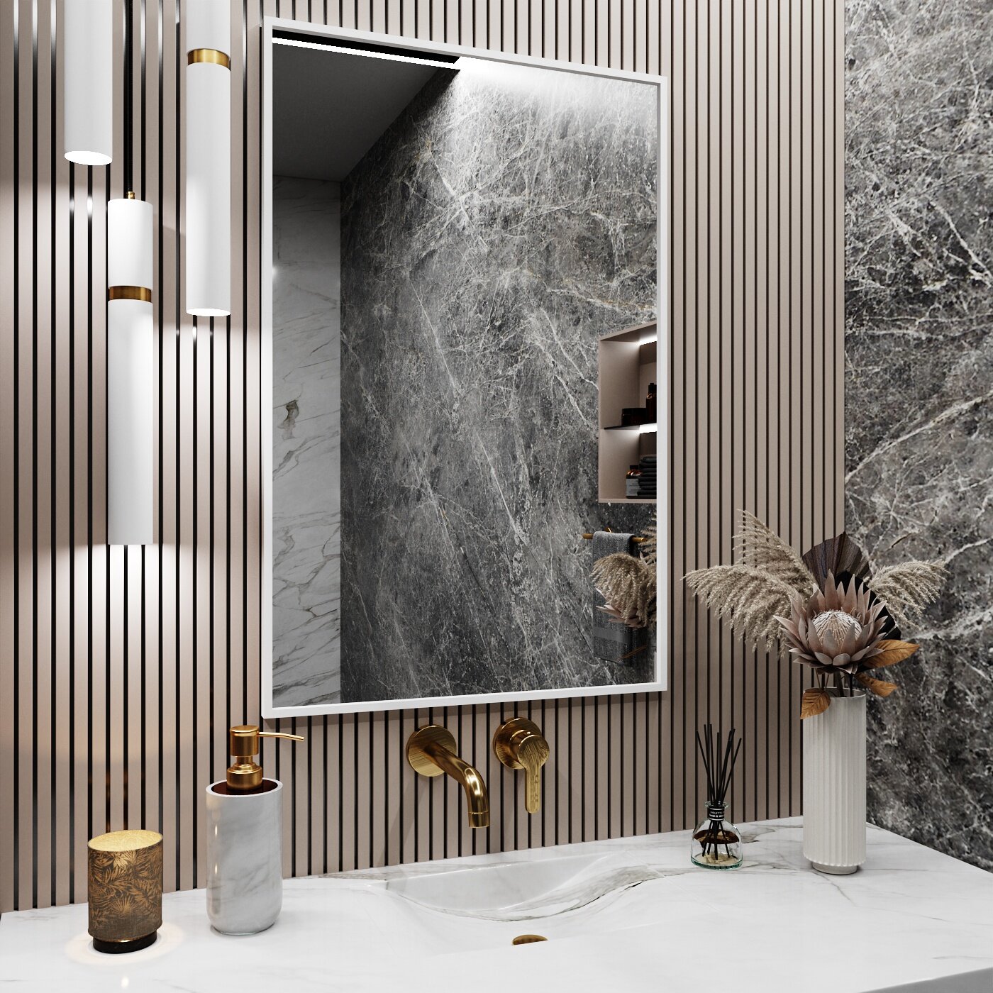 Зеркало настенное для ванной КерамаМане 70*100 см с холодной подсветкой 6000 К с сенсорной кнопкой