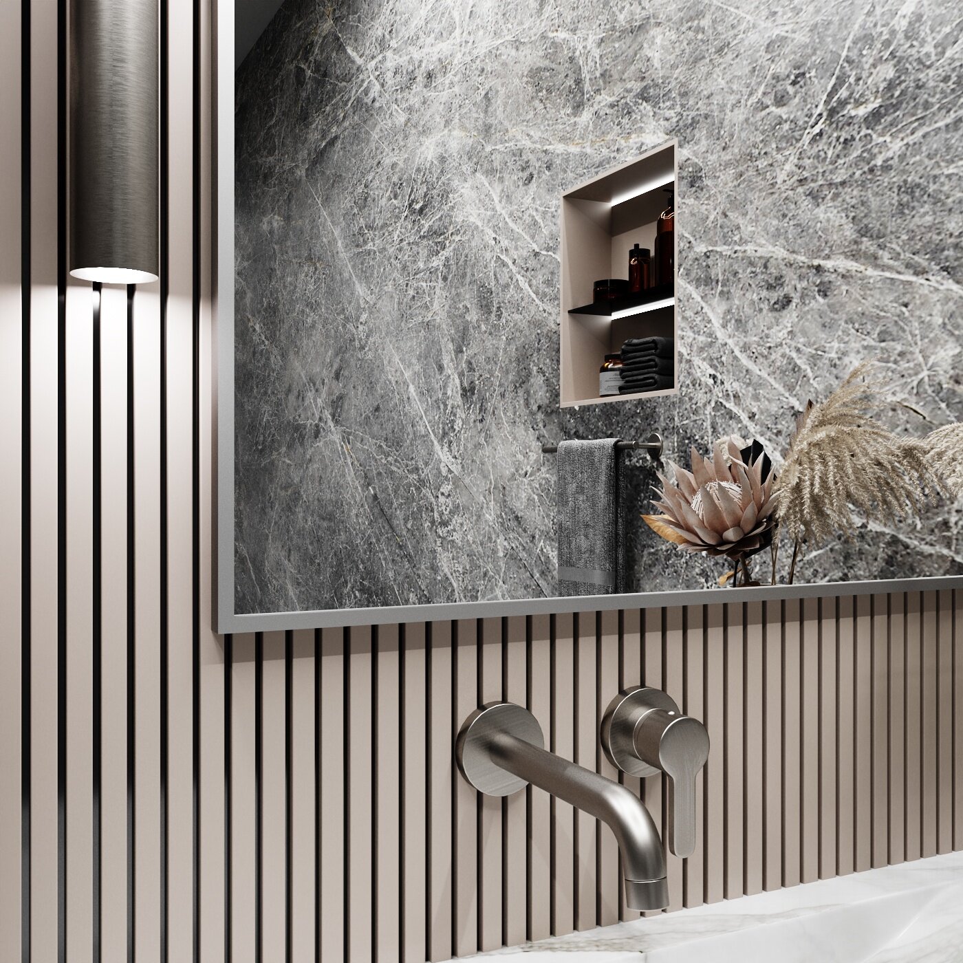 Зеркало настенное в алюминиевой раме Market-house , 90х40 см. Серебро