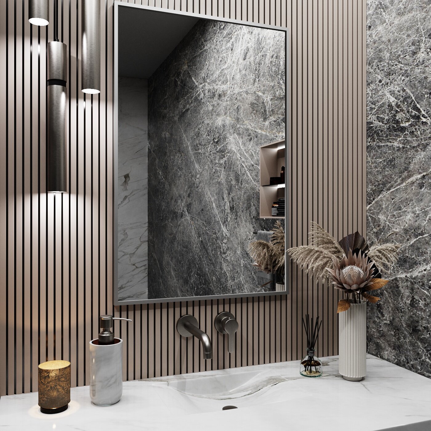 Зеркало настенное в алюминиевой раме Market-house , 90х40 см. Черное