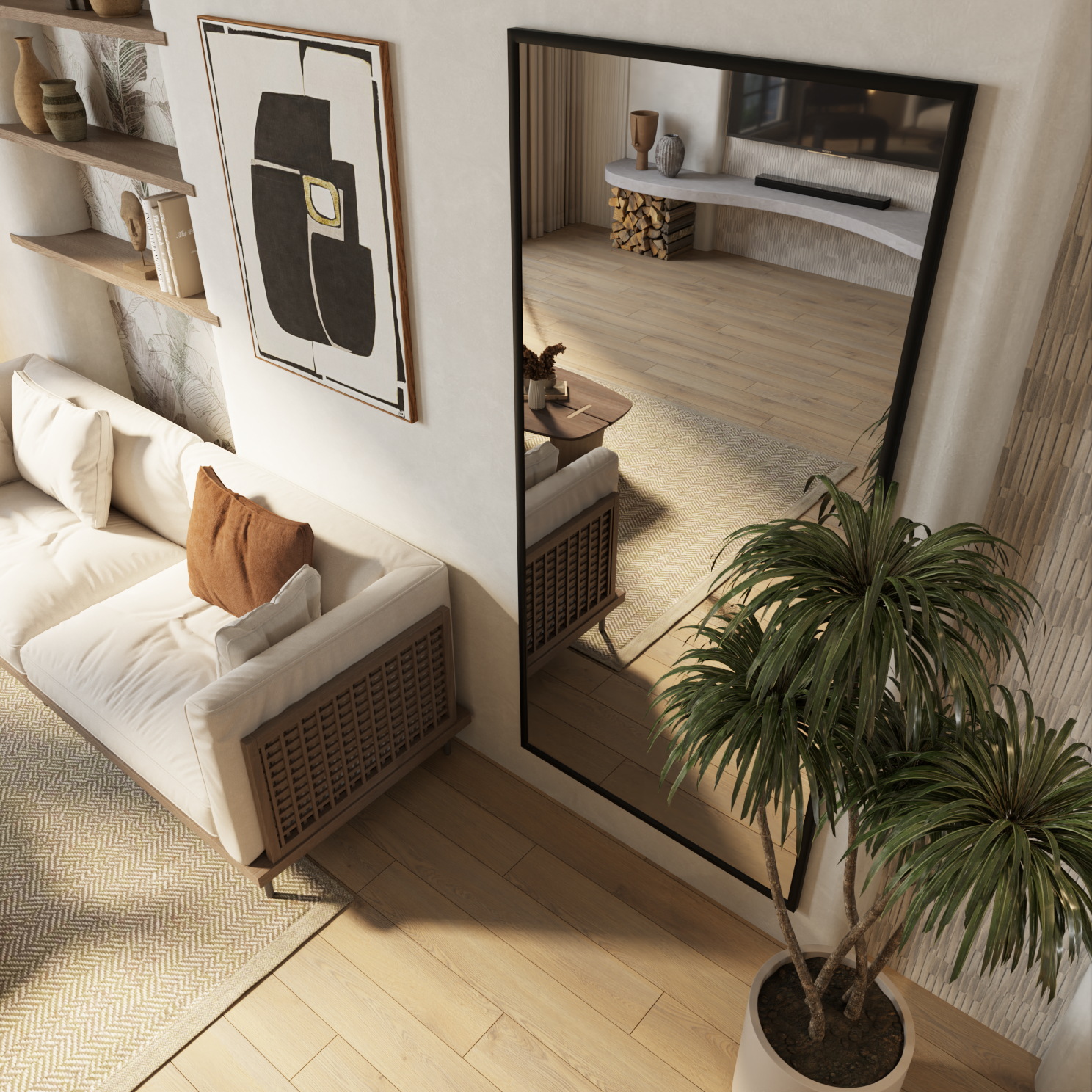 Зеркало напольное интерьерное в полный рост криволинейное с напольной подставкой "Stone" 170смх70см
