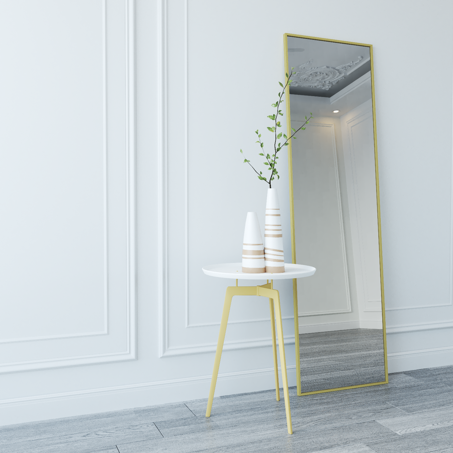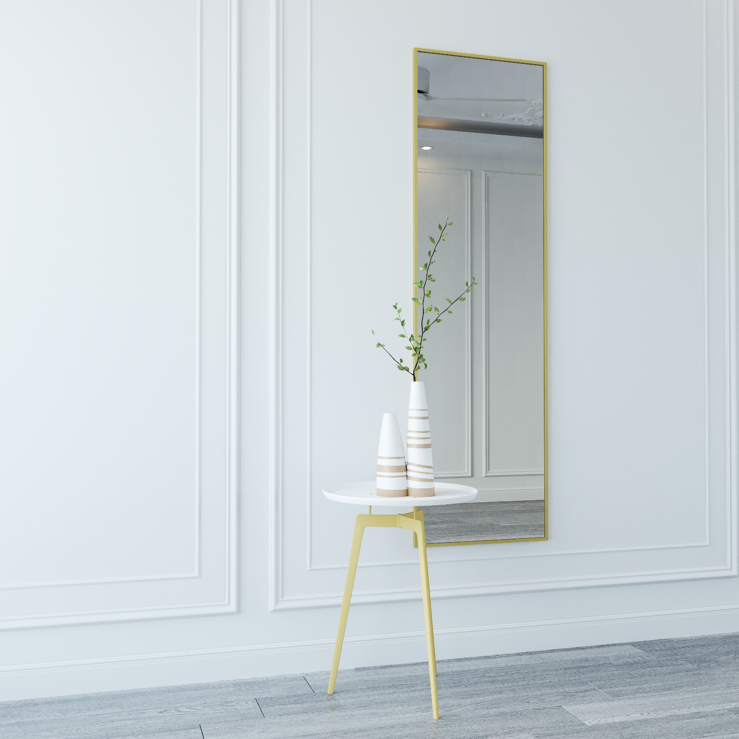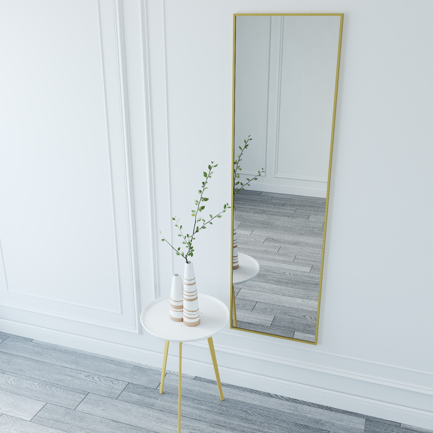Зеркало настенное зеркало интерьерное 170х50 в металлической раме, белое