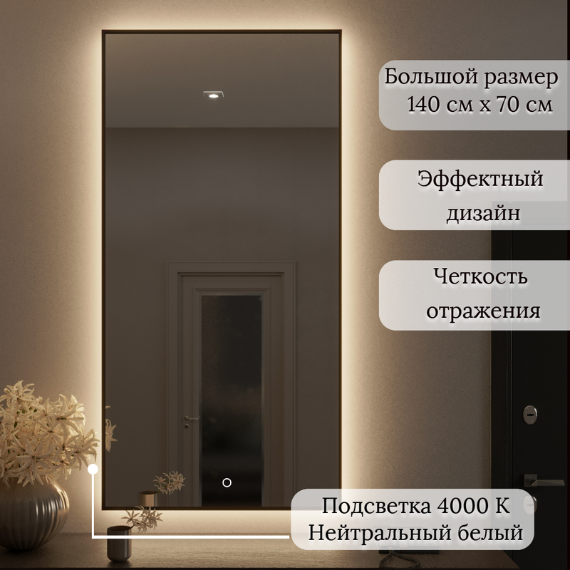 СохранитьЗеркало с подсветкой 4000К с сенсорной кнопкой серии "SEVILLA" 140 см Х 70 см в раме черного цвета интересное: