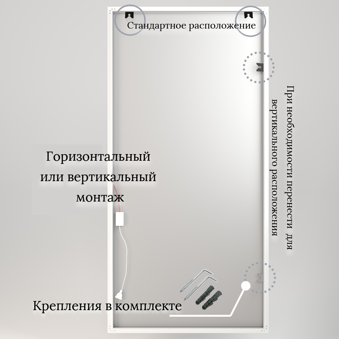 Зеркало настенное для ванной КерамаМане 70*100 см с холодной подсветкой 6000 К с сенсорной кнопкой