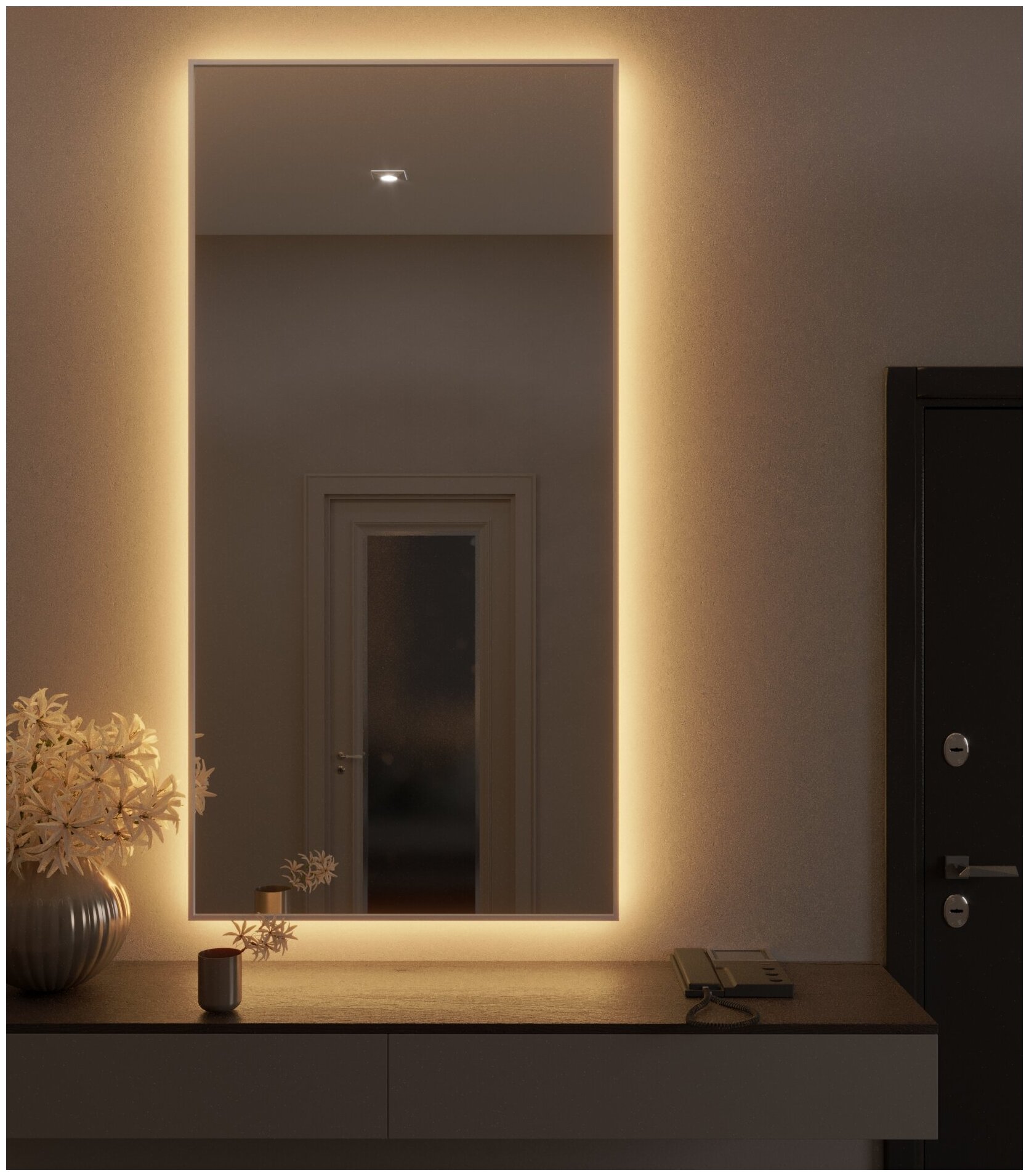 Зеркало с подсветкой 4000К с сенсорной кнопкой серии "SEVILLA" 140 см Х 70 см в раме белого цвета