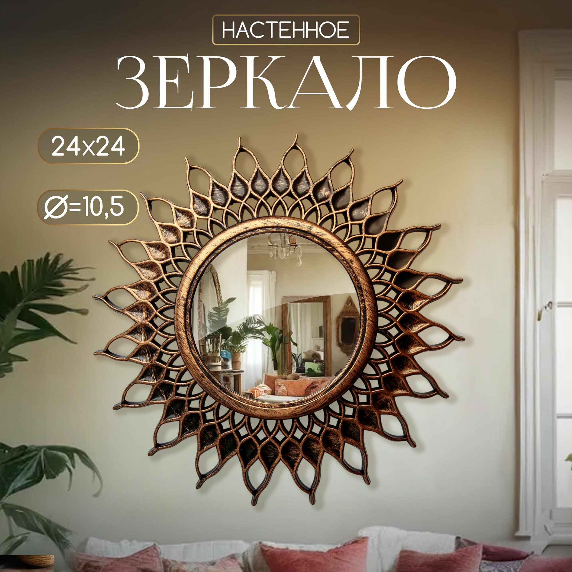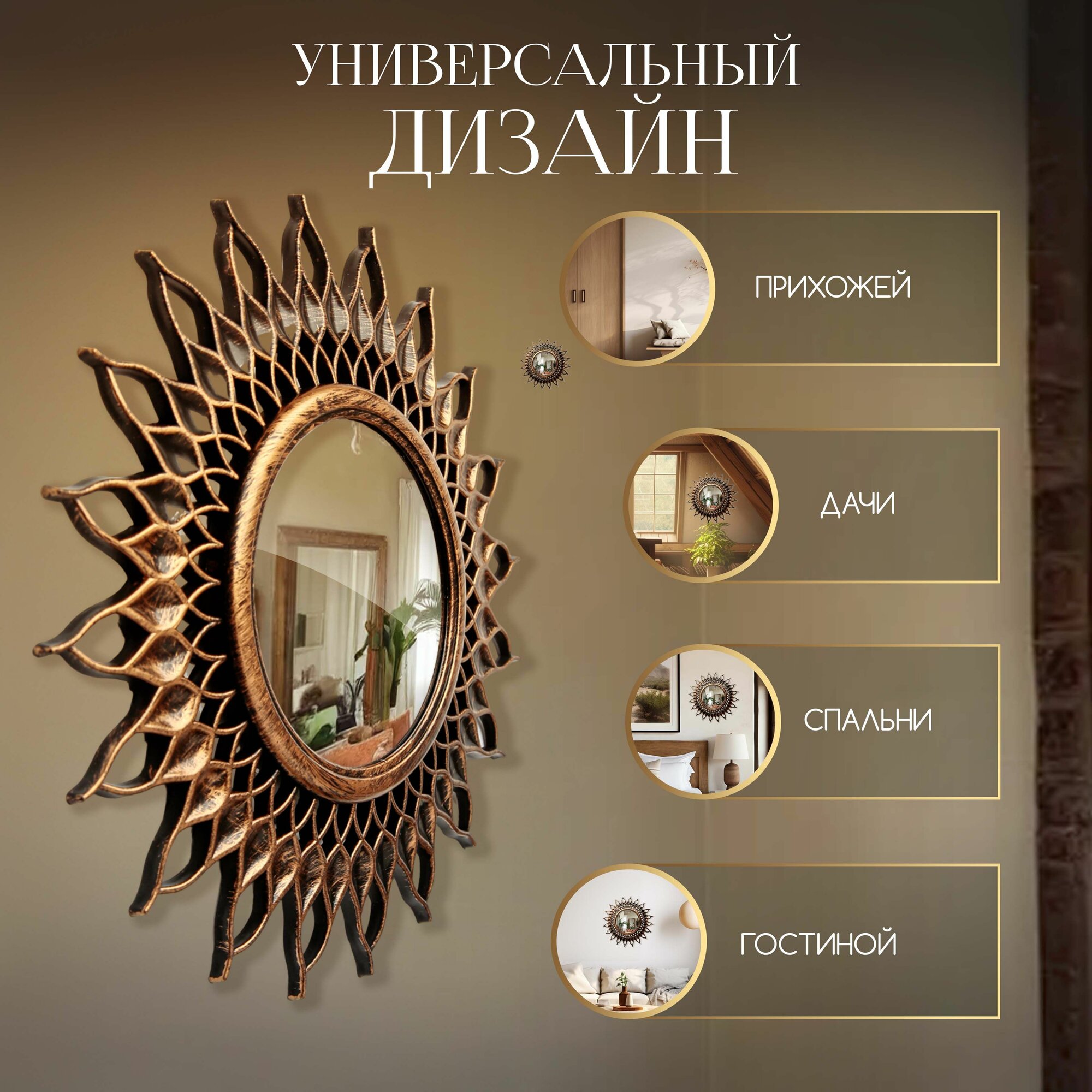 Зеркало настенное «Солнце», d зеркальной поверхности 10,5 см, цвет «состаренное золото» интересное: