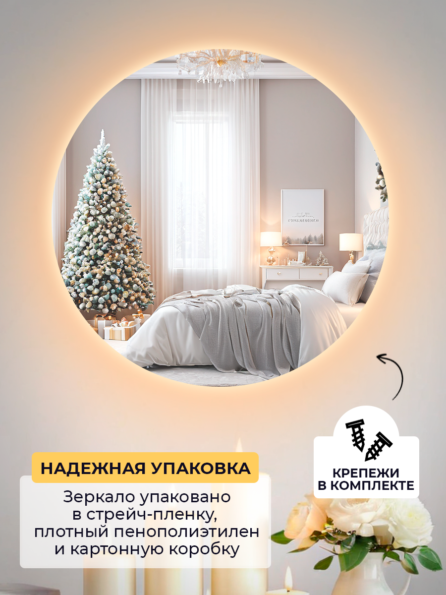 | Комплектация | Зеркало с подсветкой, дюбеля и саморезы для монтажа, транспортировочная упаковка. |