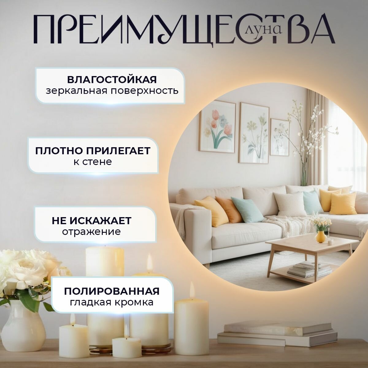 Настенное зеркало с подсветкой в ванную прихожую круглое без выключателя 4000К 40 см