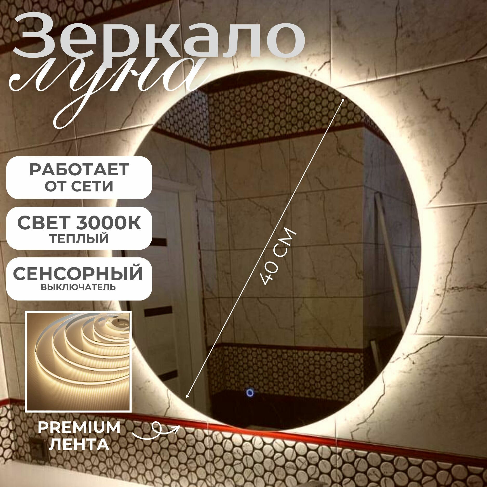 Купить Настенное зеркало с подсветкой в ванную прихожую круглое сенсорный выключатель 3000К 40 см
