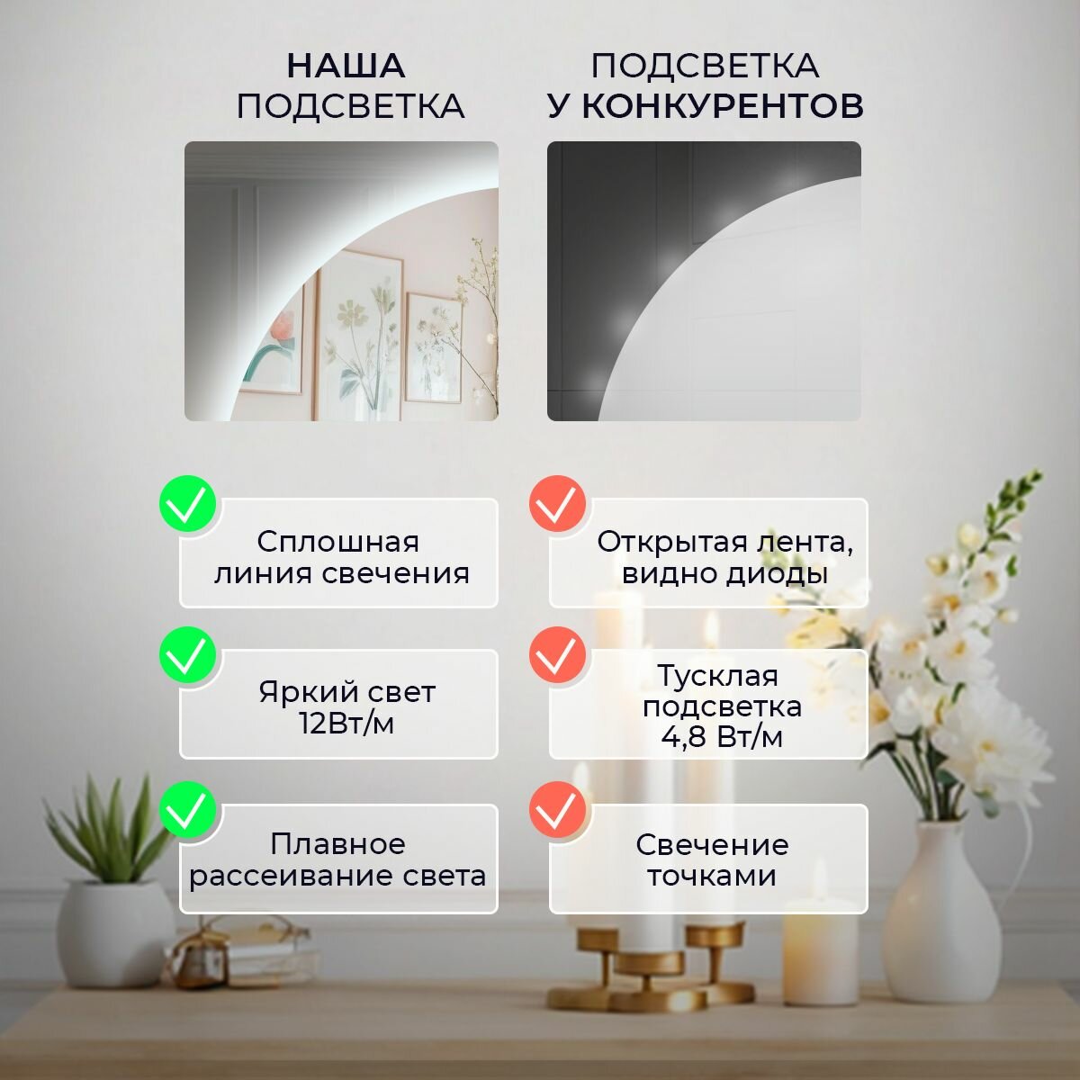Зеркало интерьерное настенное с подсветкой парящее полукруглое левое для ванной