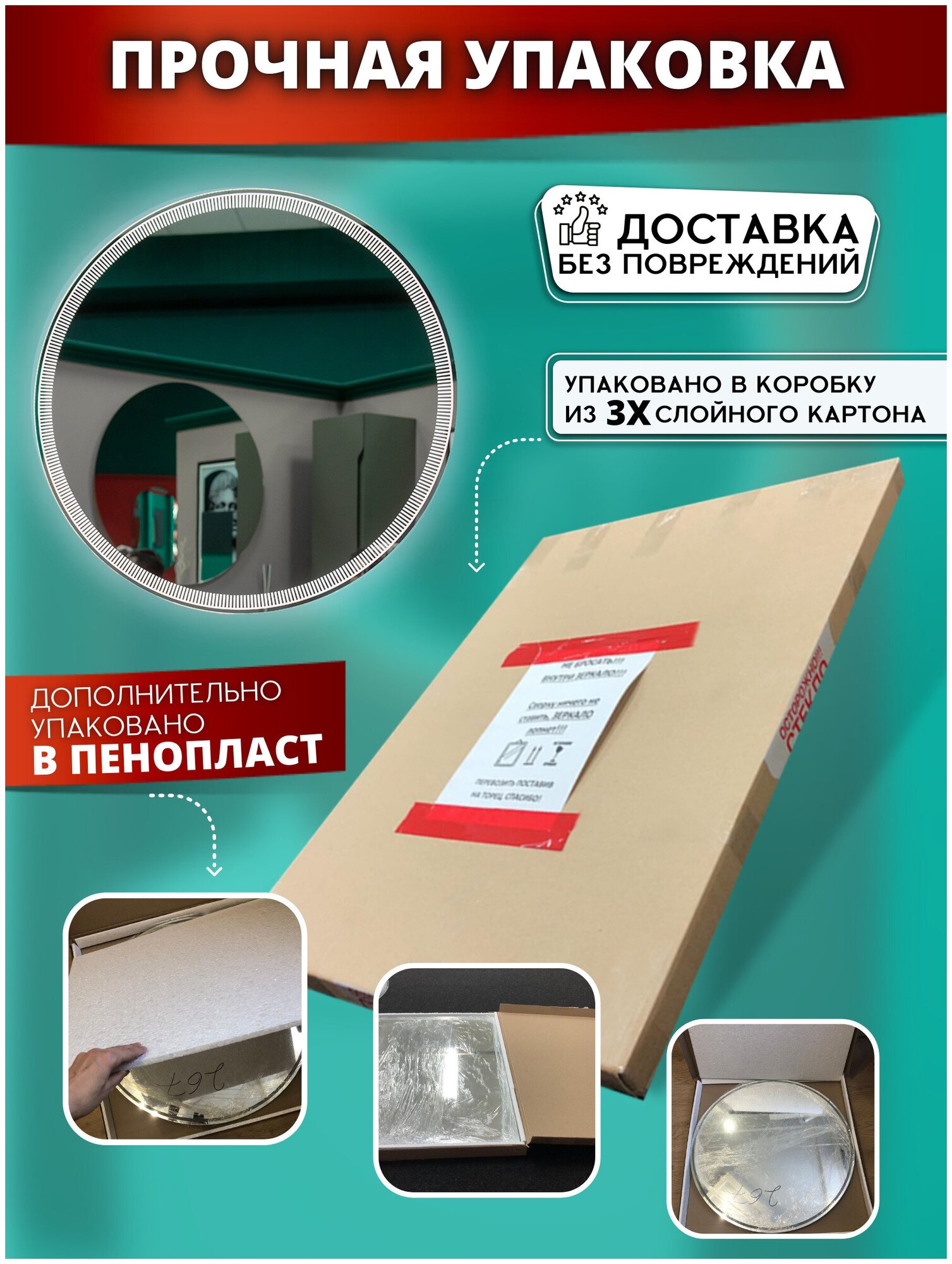 | Особенности | без рамы, подсветка, сенсорный выключатель подсветки |