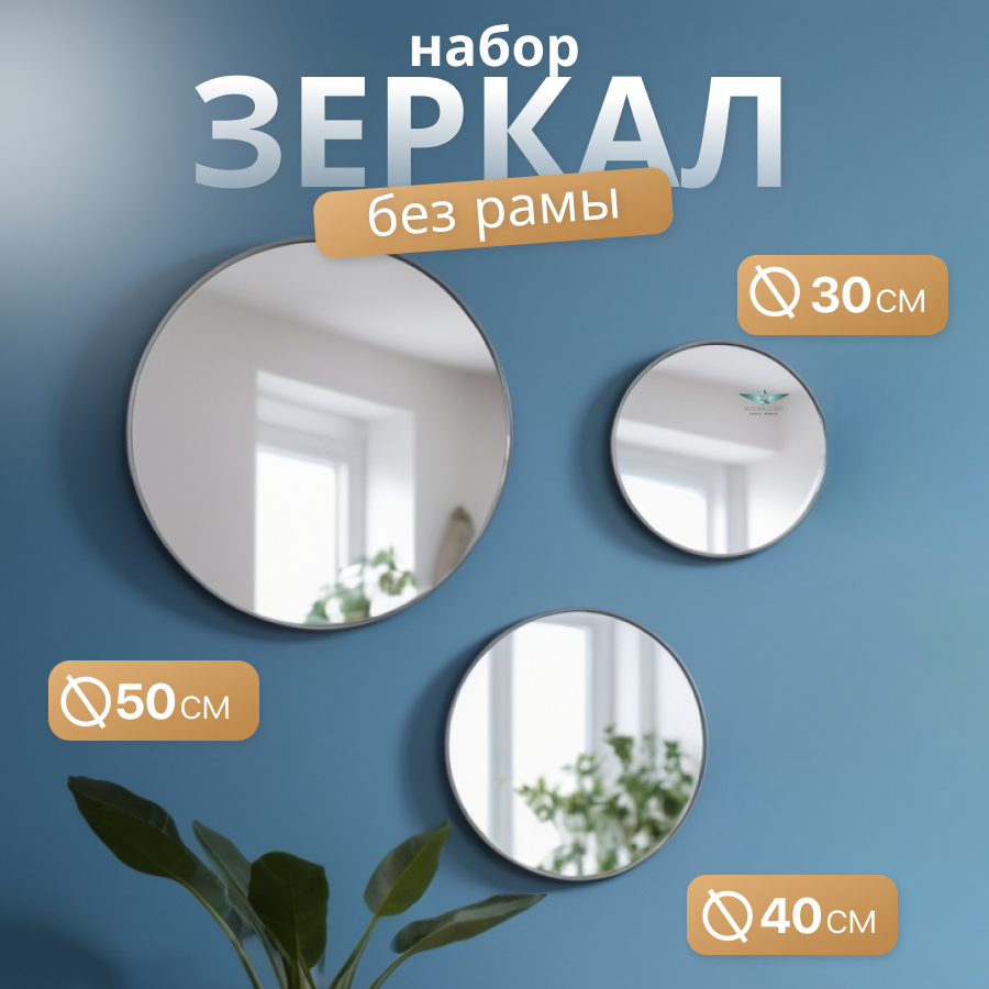 Комплект круглых зеркал 3 шт., Victoria Glass, серебро, 500*500, 400*400, 300*300 интересное: