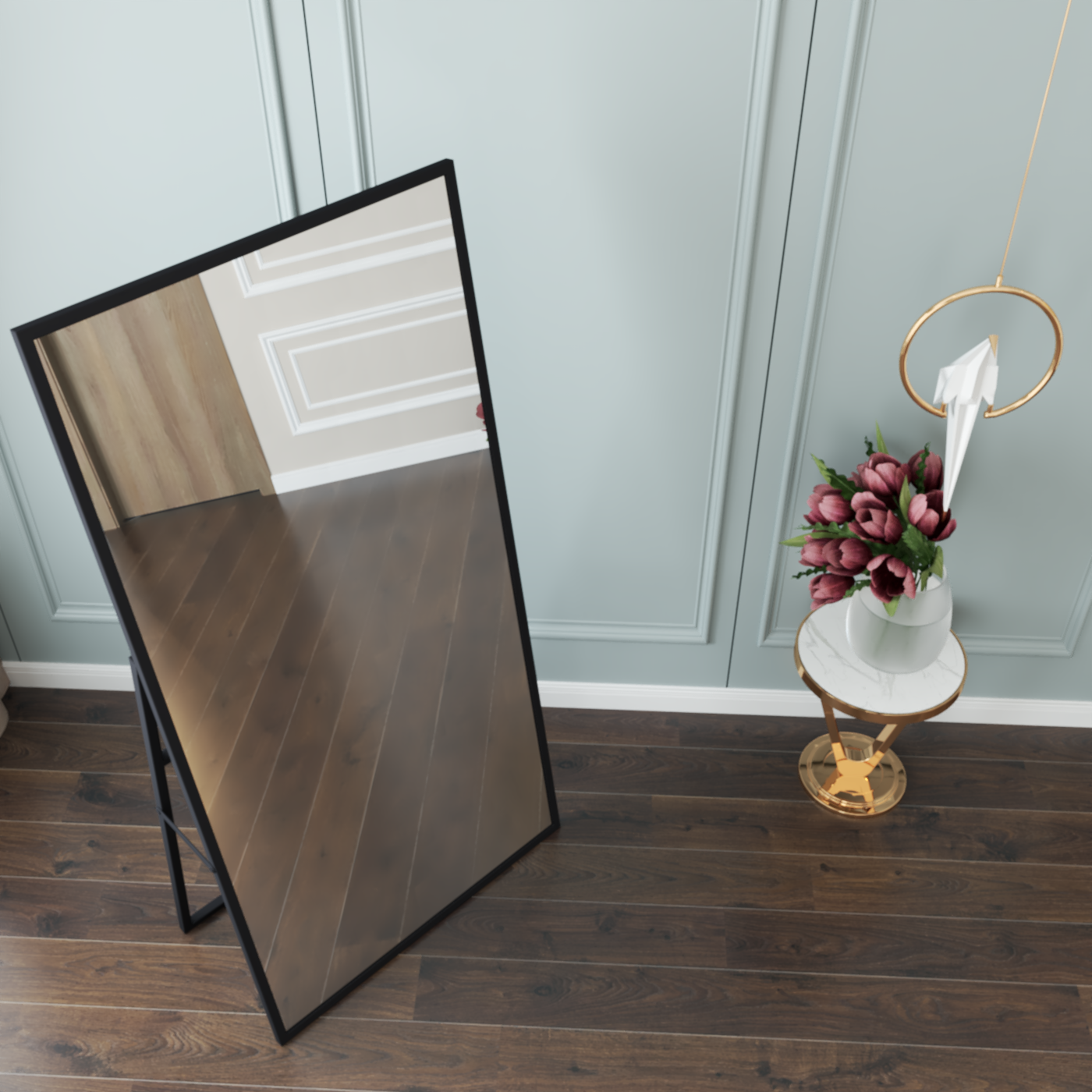 Зеркало напольное 160х60 интерьерное в черной металлической раме квадра