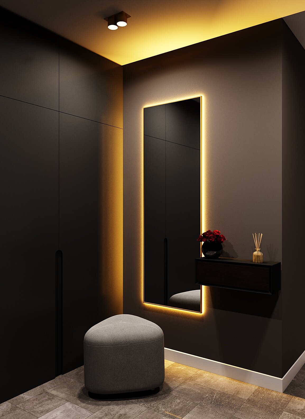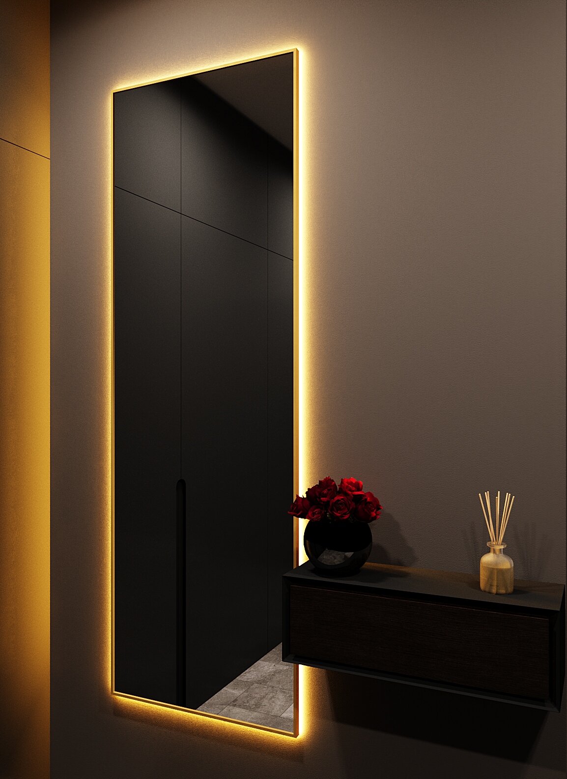 Зеркало с подсветкой в алюминиевой раме, настенное, ONE MIRROR, 180х60 см. Черное. Свет: Теплый белый 3000К
