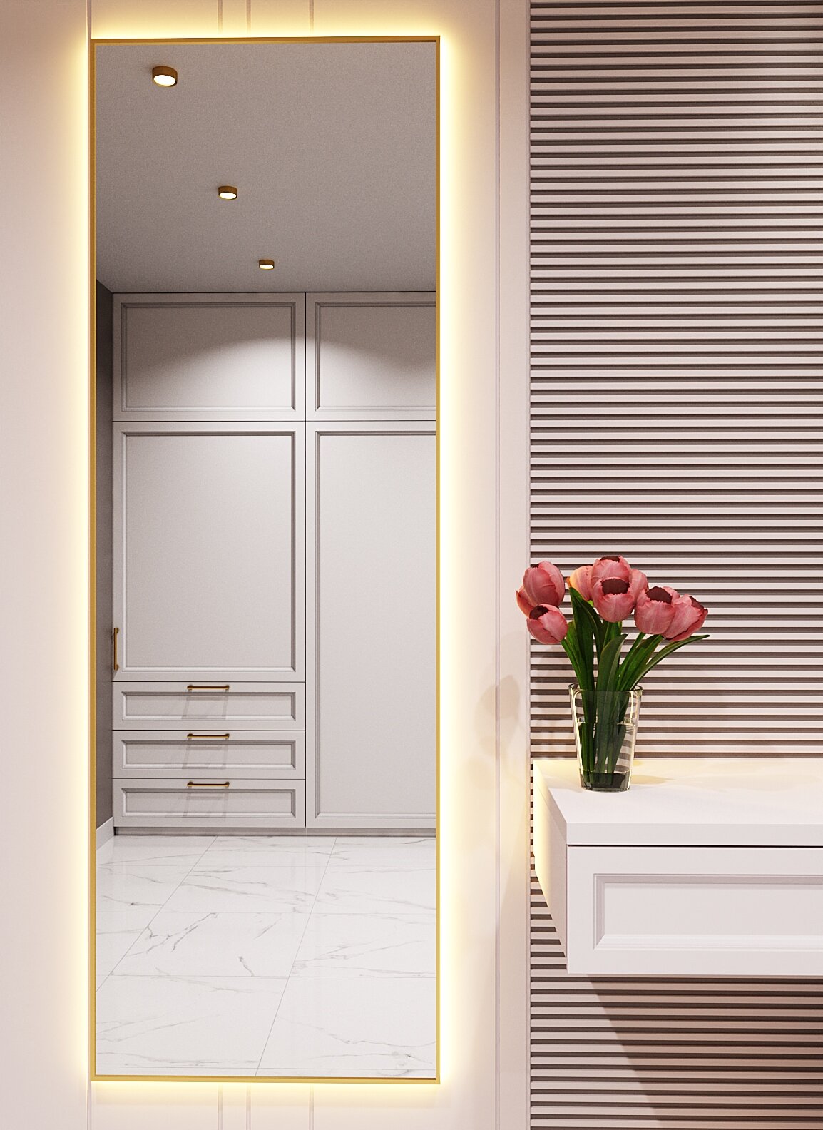 Зеркало с подсветкой в алюминиевой раме, настенное, ONE MIRROR, 180х60 см. Белое. Свет: Теплый белый 3000К