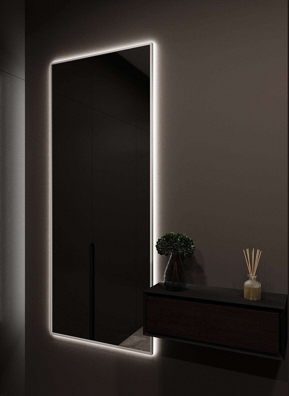 Зеркало с подсветкой в алюминиевой раме, настенное, ONE MIRROR, 180х60 см. Черное. Свет: Теплый белый 3000К