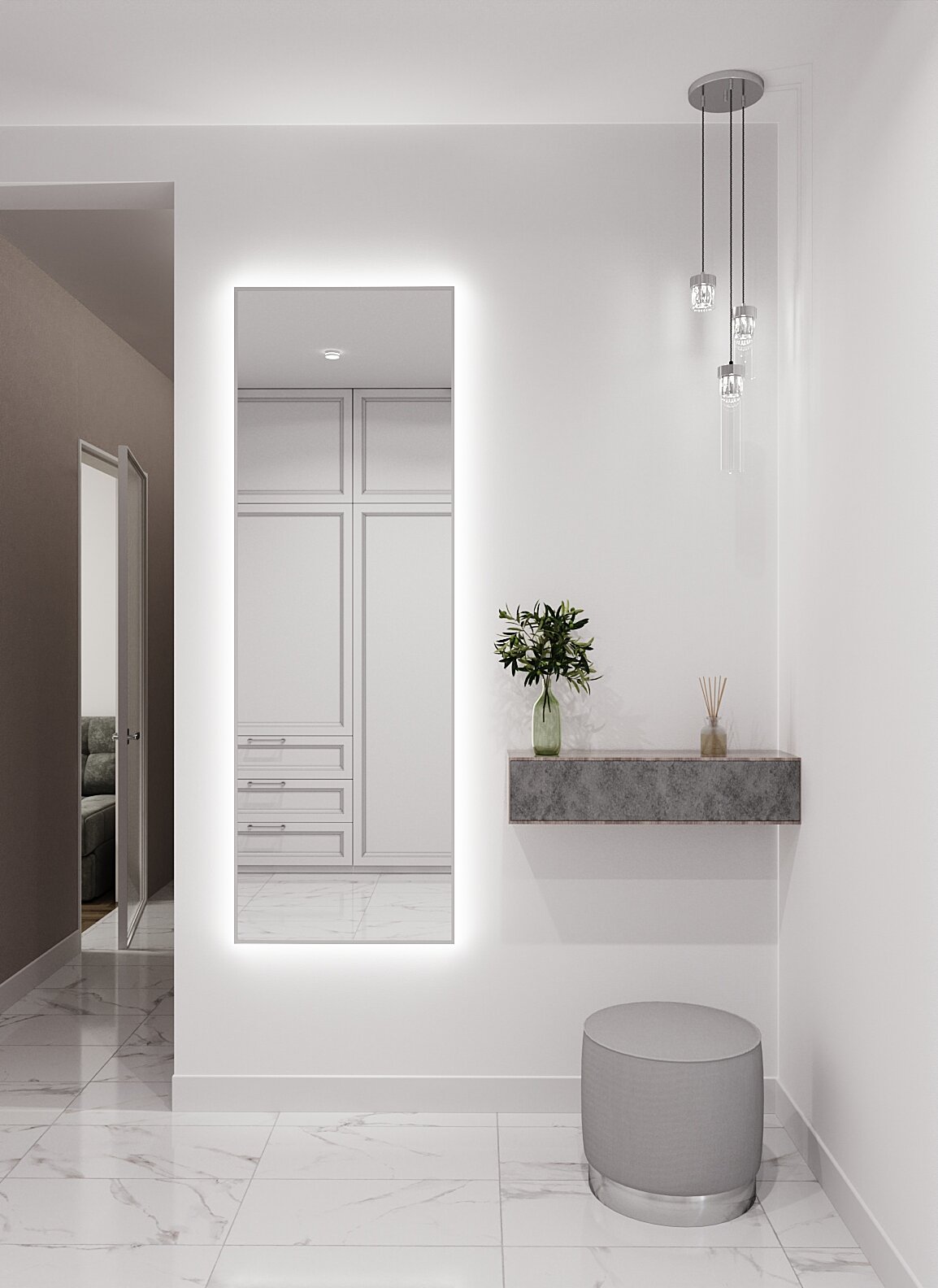 Зеркало с подсветкой в алюминиевой раме, настенное, ONE MIRROR, 180х60 см. Белое. Свет: Нейтральный белый 6000К
