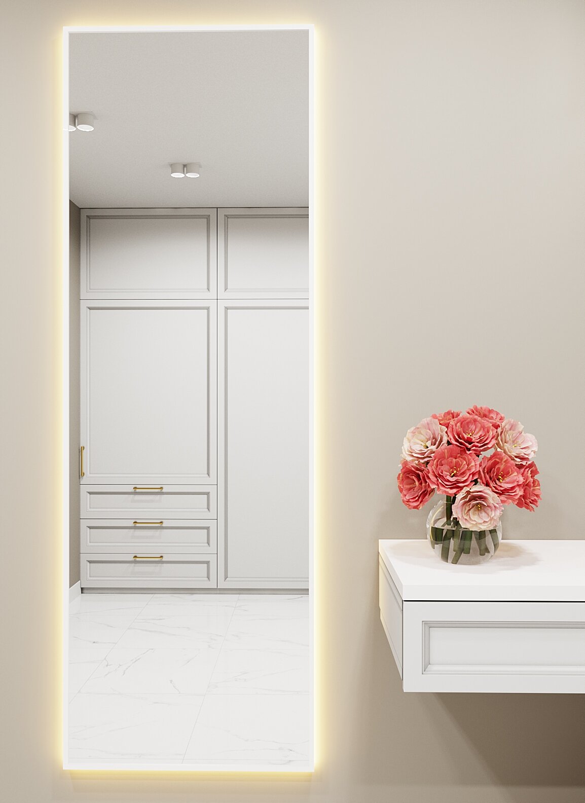СохранитьЗеркало с подсветкой в алюминиевой раме, настенное, ONE MIRROR, 180х60 см. Белое. Свет: Теплый белый 3000К интересное: