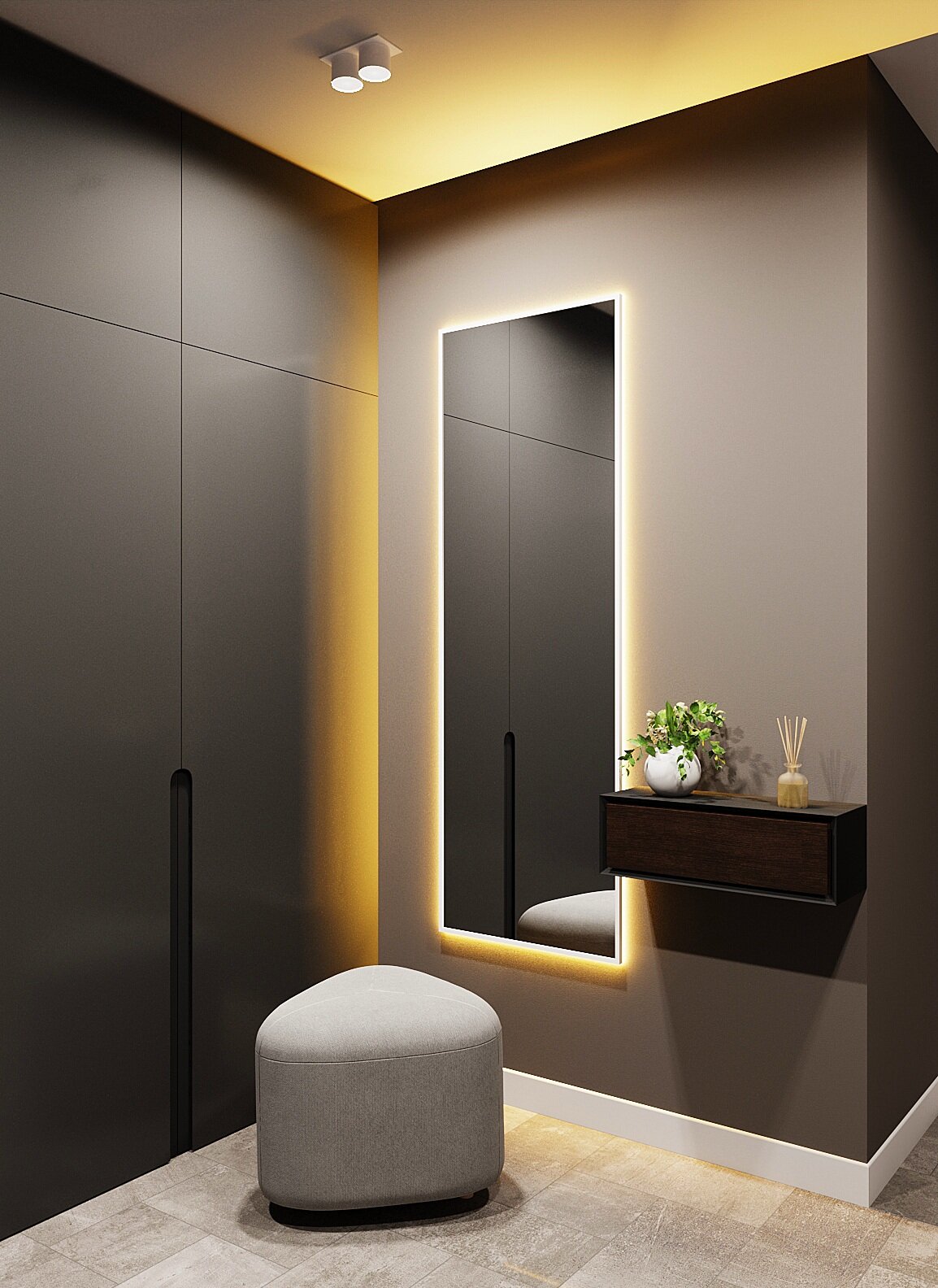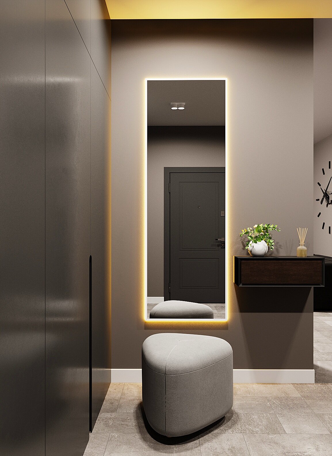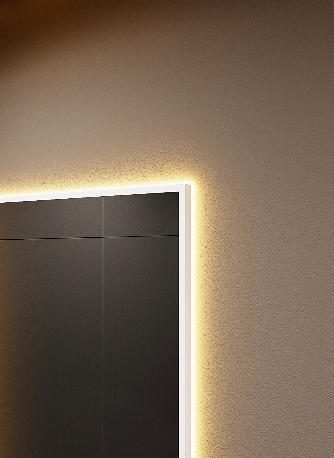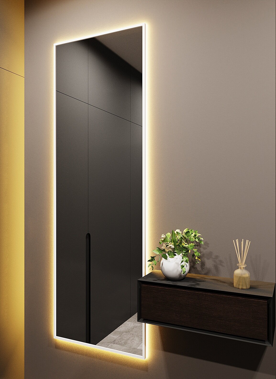 Зеркало с подсветкой в алюминиевой раме, настенное, ONE MIRROR, 180х60 см. Черное. Свет: Теплый белый 3000К