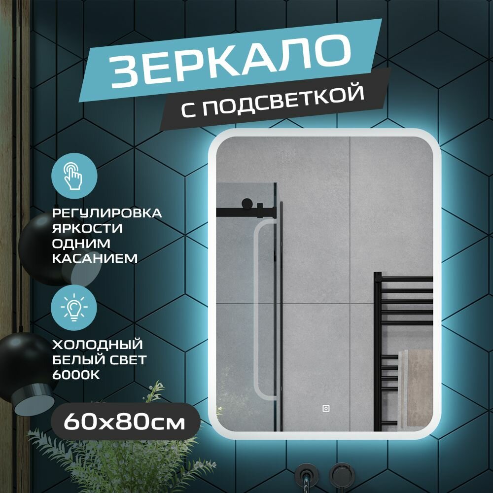 Зеркало с подсветкой в ванную комнату настенное 80*60 см сенсорное