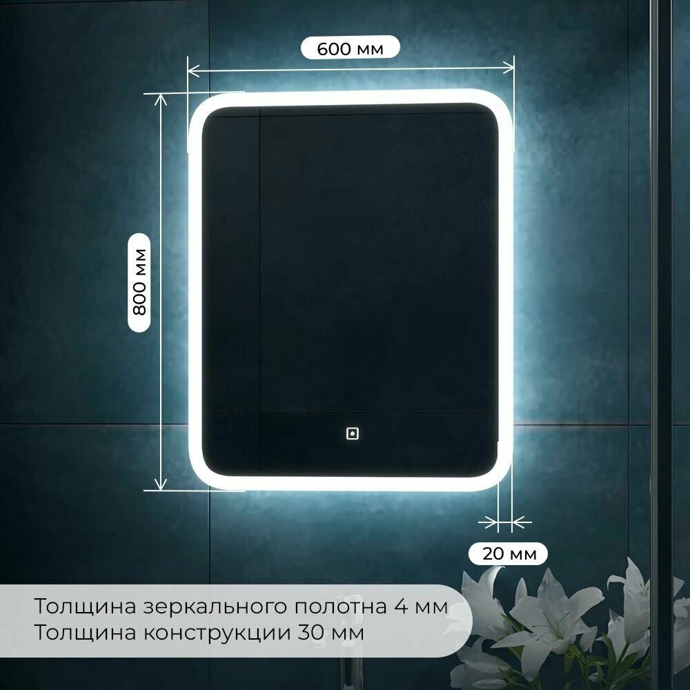 Зеркало Континент Bruno 600х800 ЗЛП163 с подсветкой с сенсорным выключателем с диммером