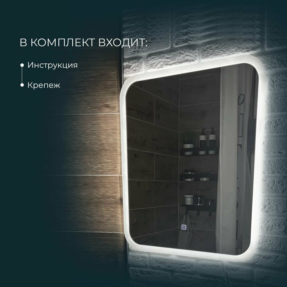 Зеркало с подсветкой в ванную комнату настенное сенсорное 60*80 см