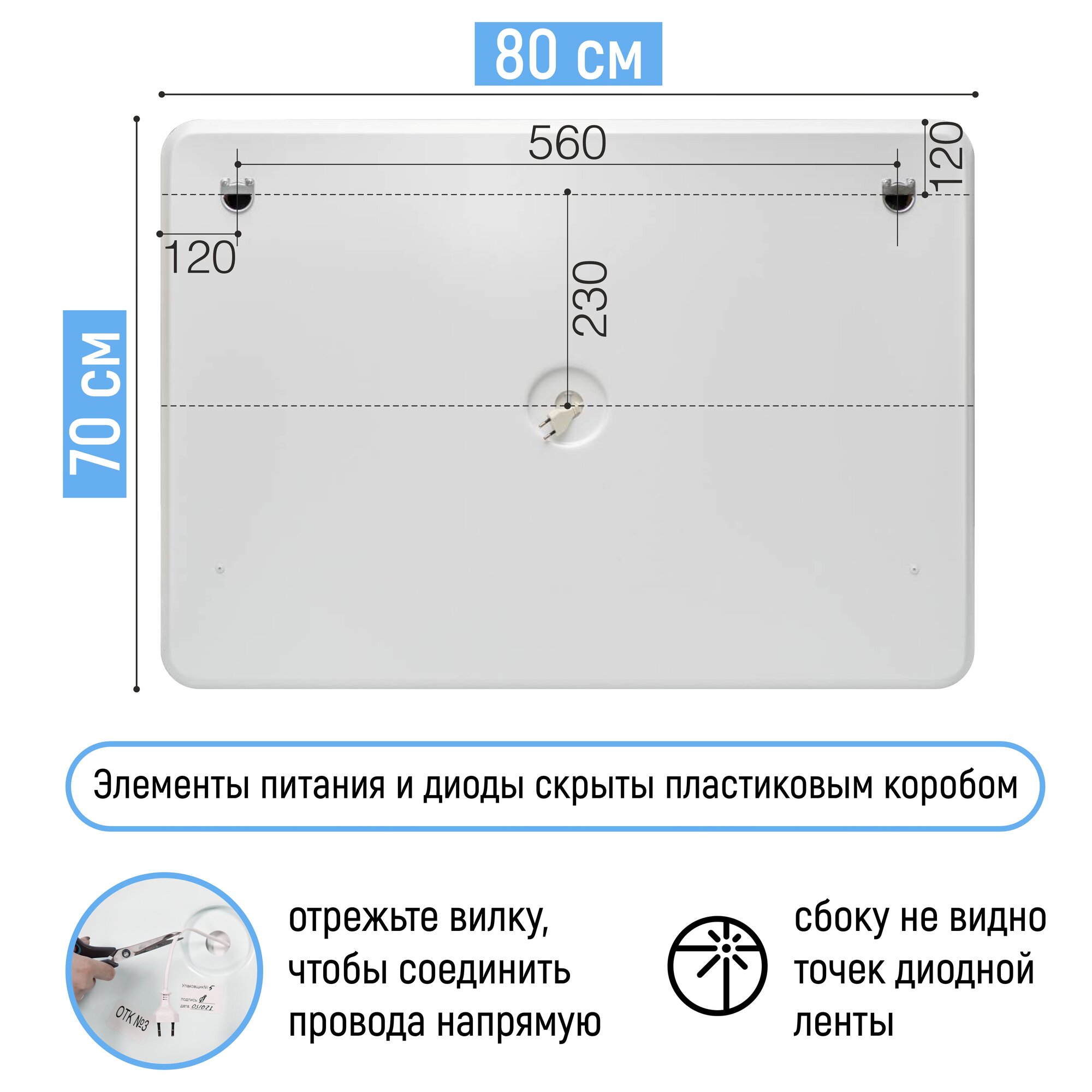 СохранитьЗеркало в ванную Milan 80х70 см с фронтальной LED- подсветкой и подогревом (настенное, влагостойкое с сенсорным управлением, интерьерное, прямоугольное, антипар, холодная подсветка 6000К) интересное: