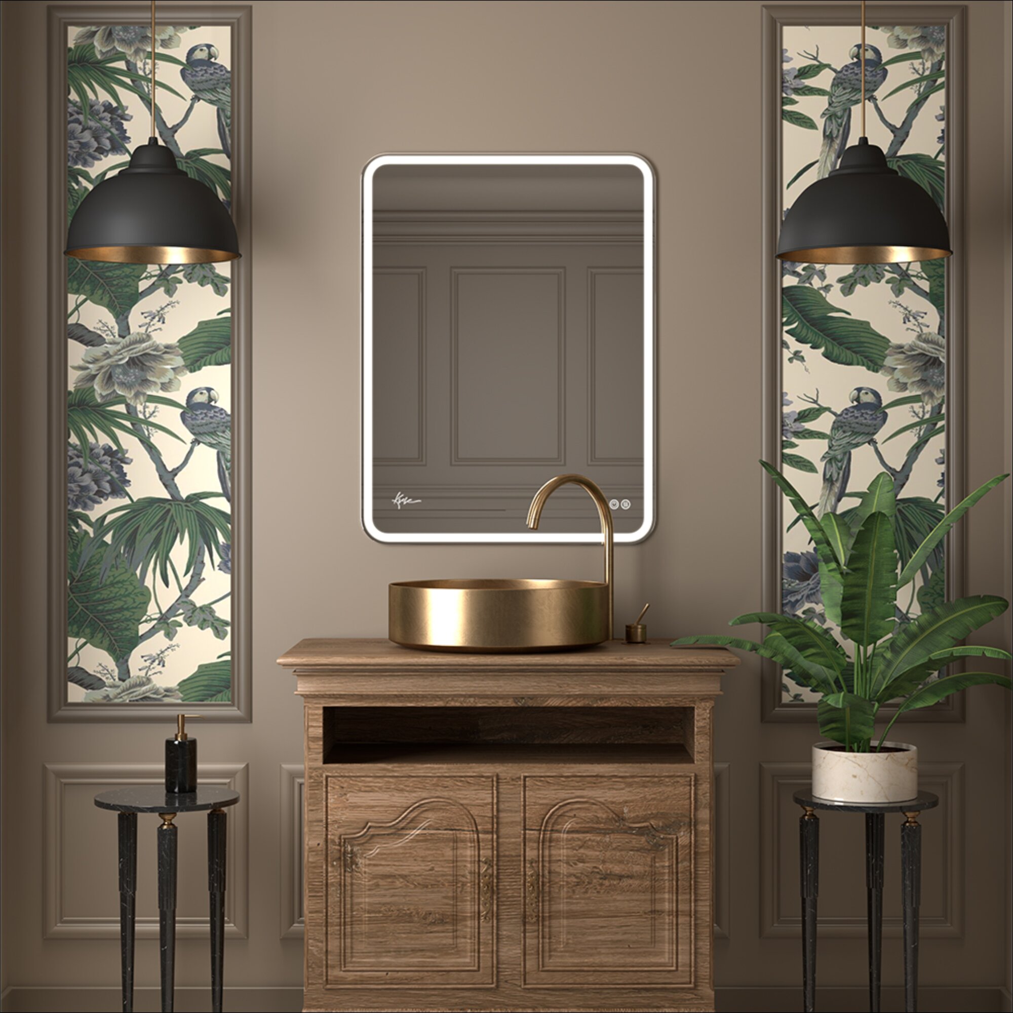 Зеркало в ванную KVVgroup Milan 50х70 см с фронтальной LED- подсветкой и подогревом (настенное, влагостойкое с сенсорным управлением, интерьерное, прямоугольное, антипар, холодная подсветка 6000К)
