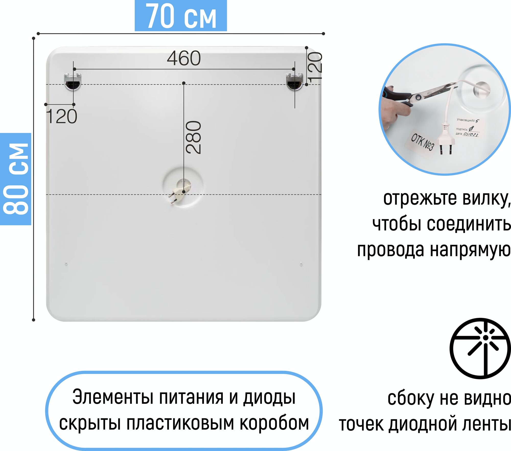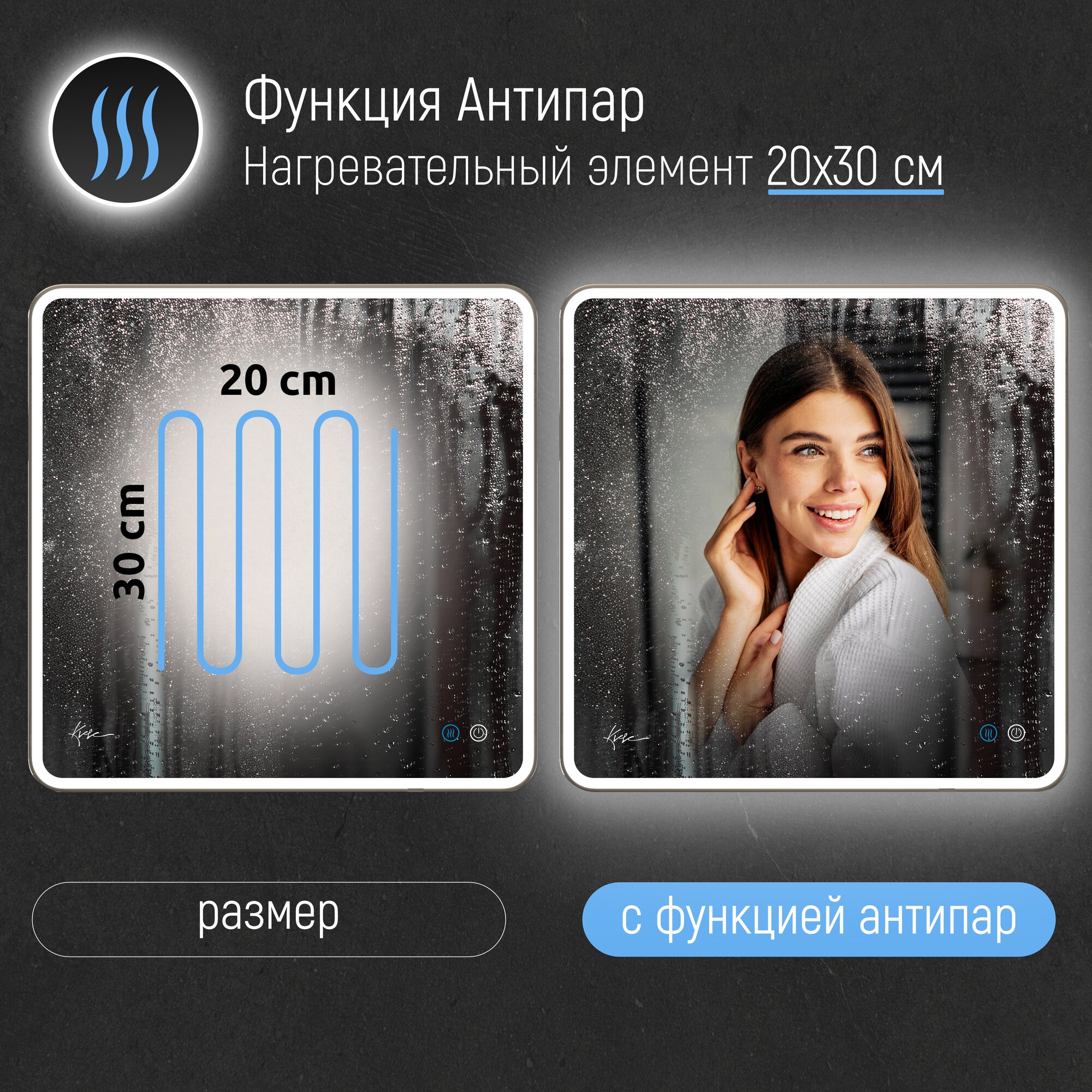 СохранитьЗеркало в ванную Milan 70х80 см с фронтальной LED- подсветкой и подогревом (настенное, влагостойкое с сенсорным управлением, интерьерное, прямоугольное, антипар, холодная подсветка 6000К) интересное: