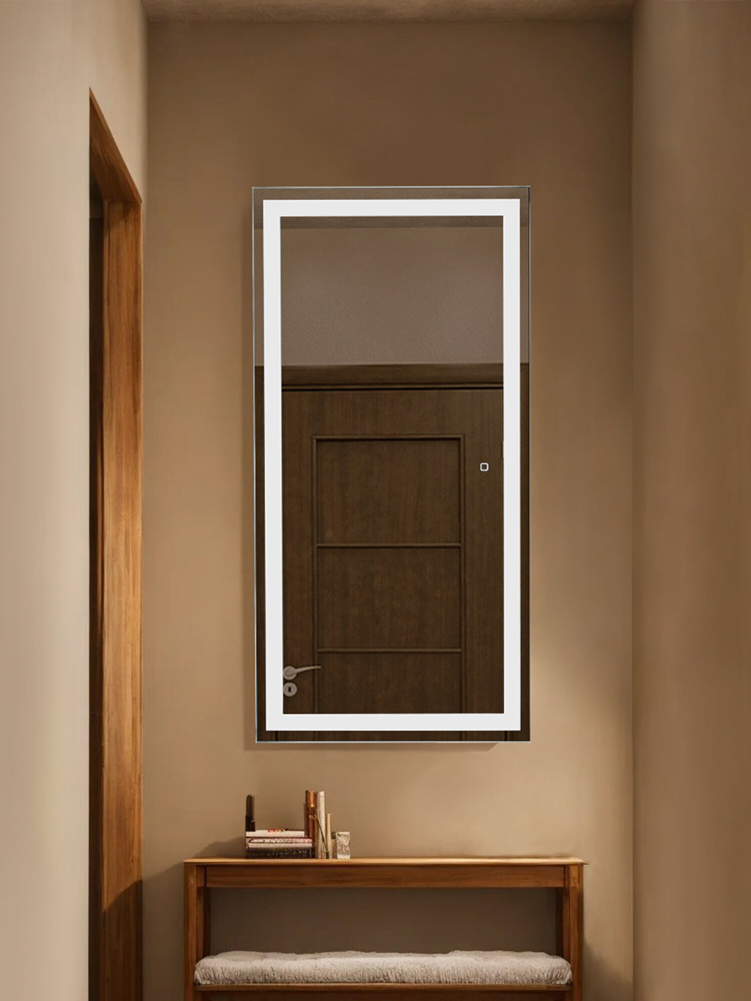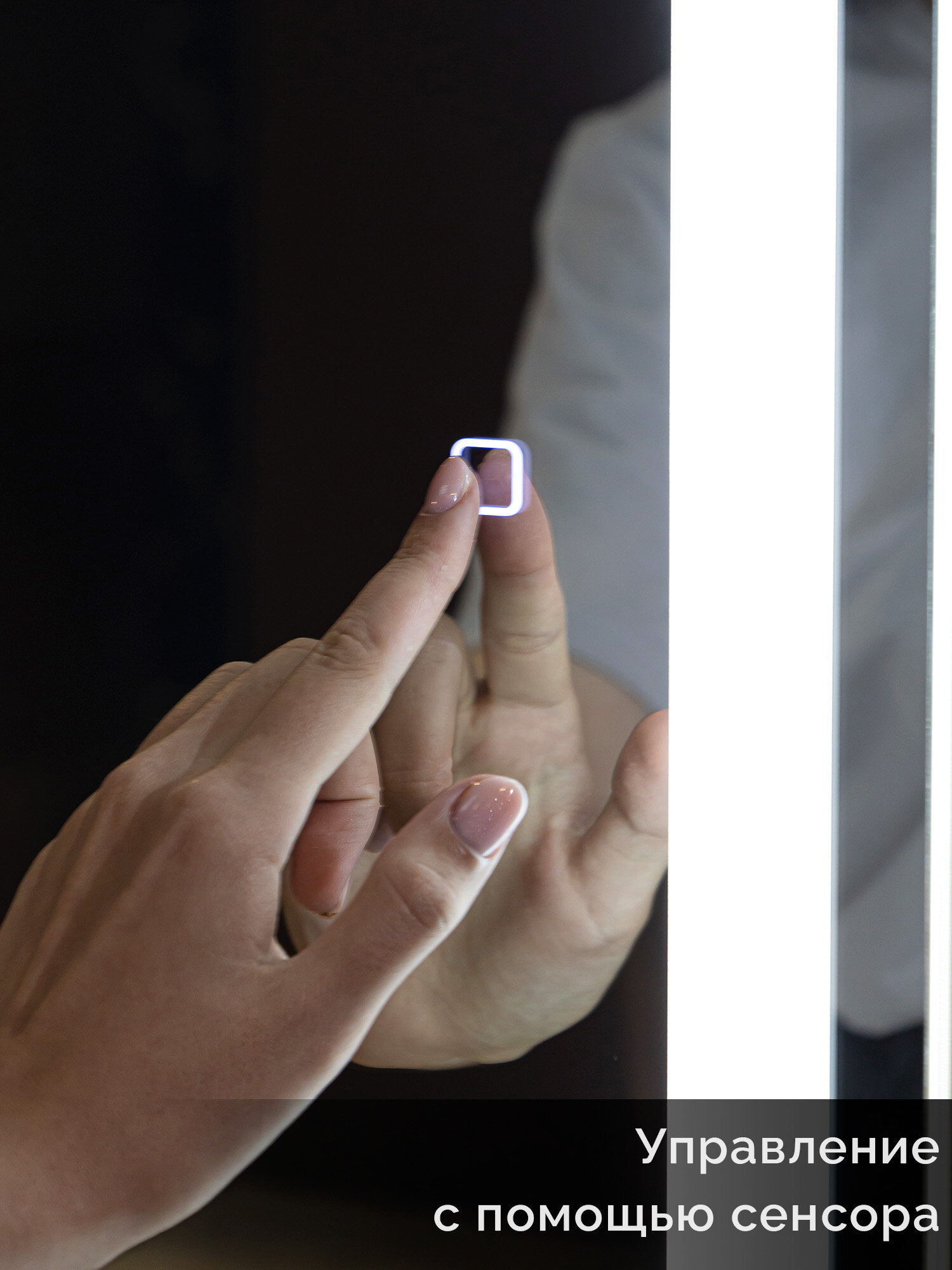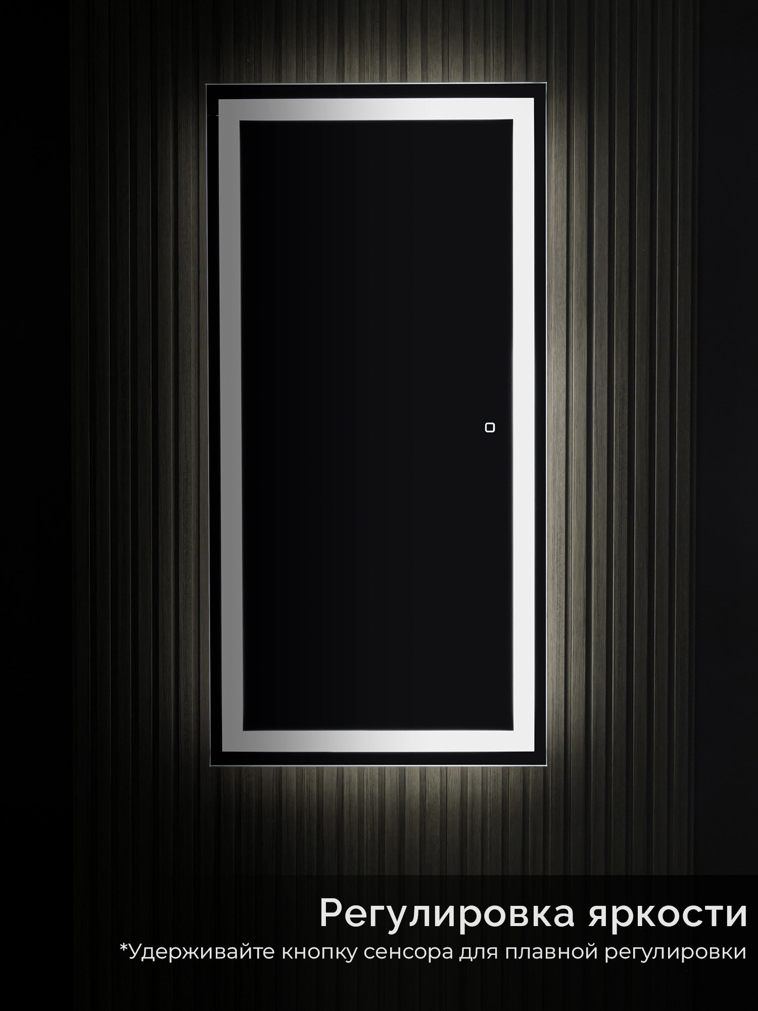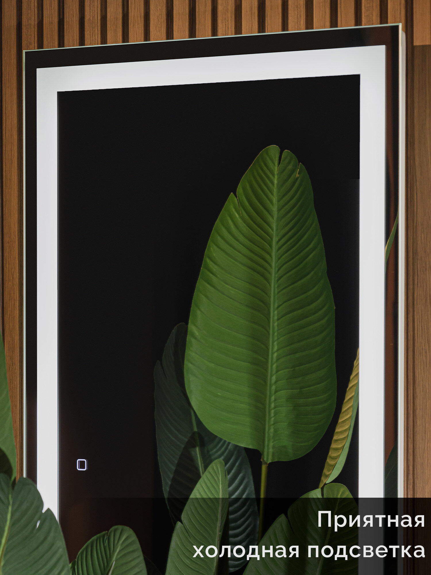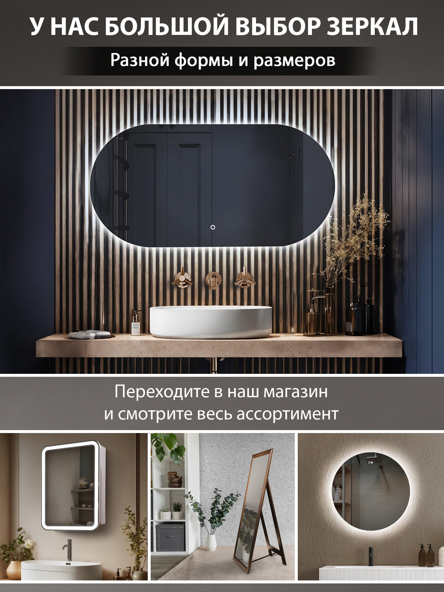 Зеркало настенное для ванной КерамаМане 70*100 см с холодной подсветкой 6000 К с сенсорной кнопкой