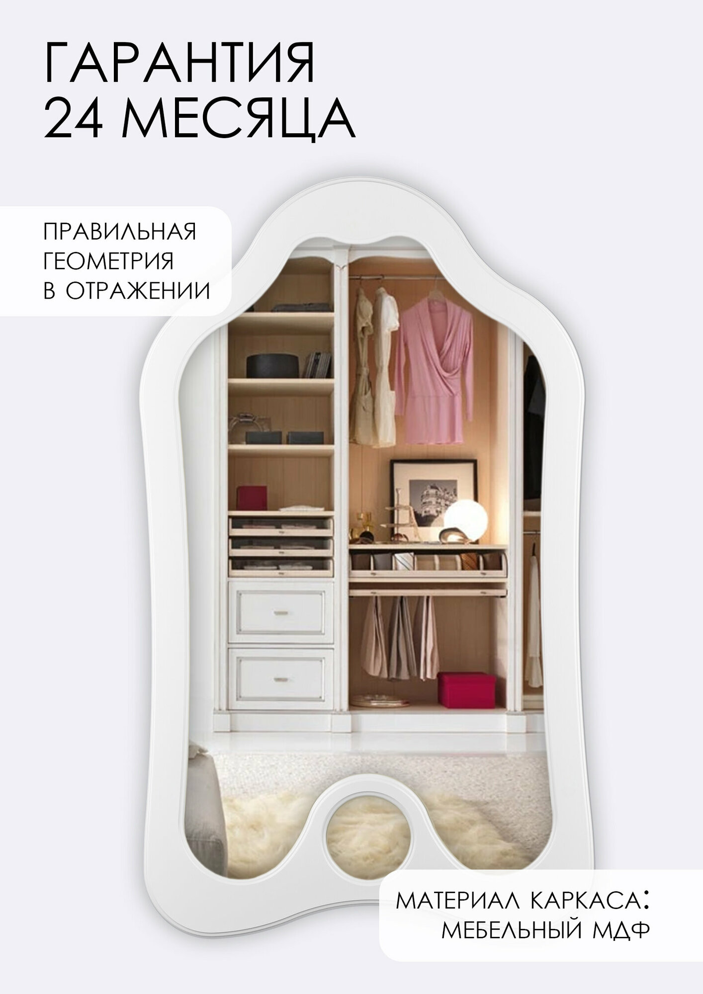 Зеркало напольное интерьерное в полный рост криволинейное с напольной подставкой "Stone" 170смх70см