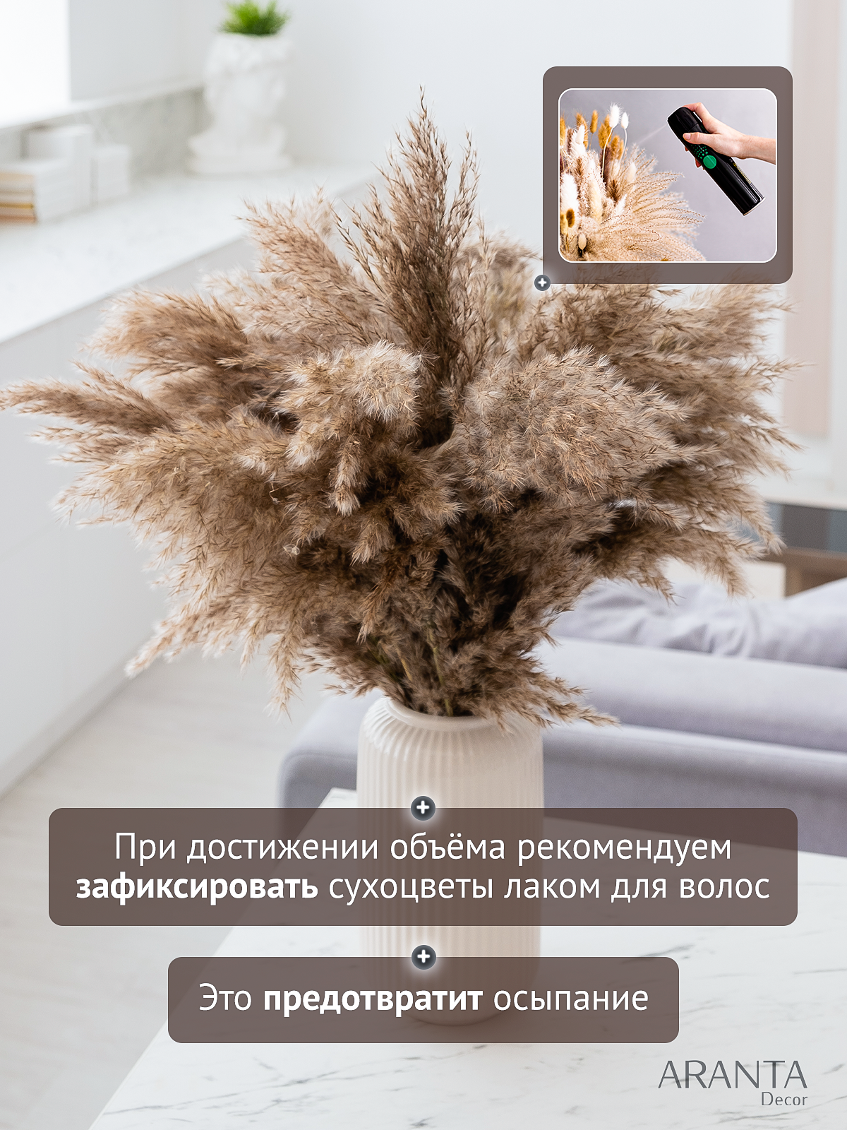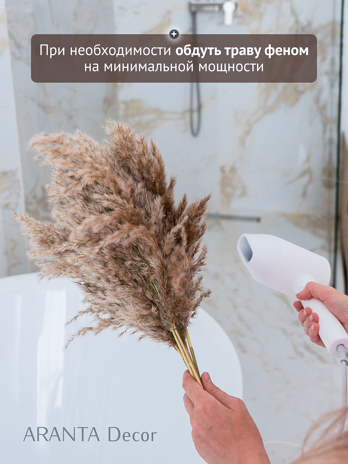Натуральная Пампасная трава 10шт, Сухоцветы для декора ARANTA, Букет сухоцветов 60см, 150гр интересное: