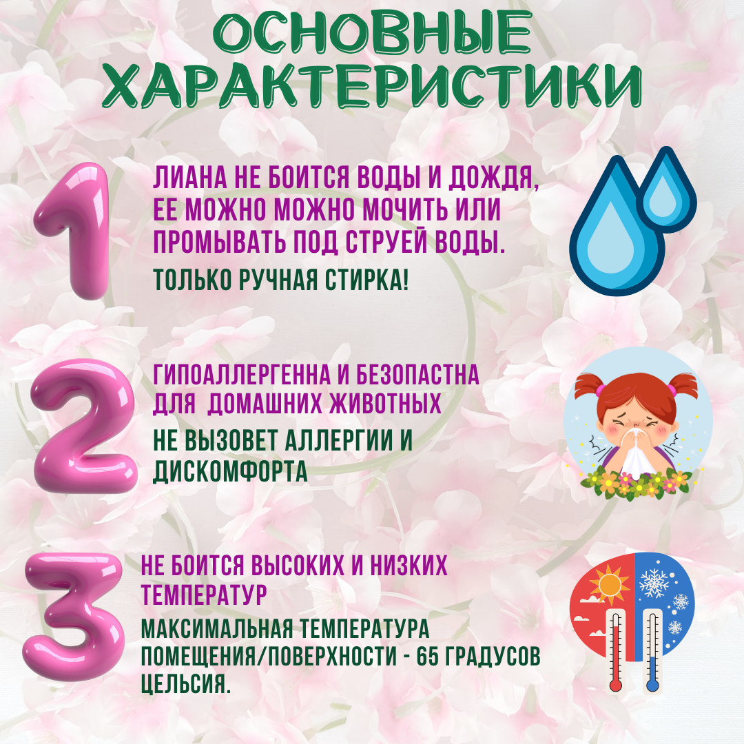 | Дополнительная информация | Лиана имеет длину 180 см и 135 соцветий, выполненных с максимальной приближенностью к натуральной сакуре |