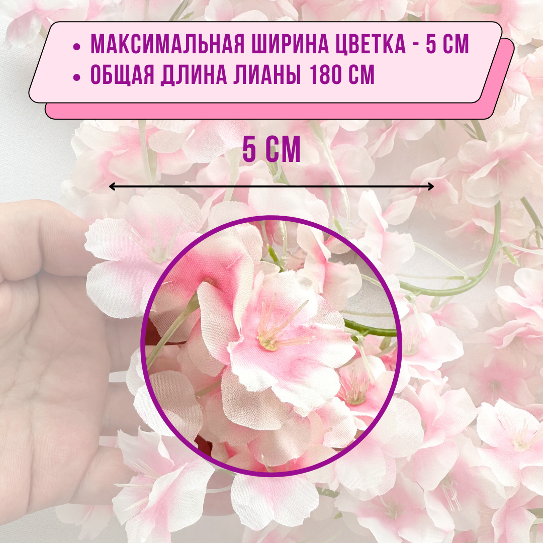 Искусственные цветы для декора розовая сакура лиана 180 см декоративная