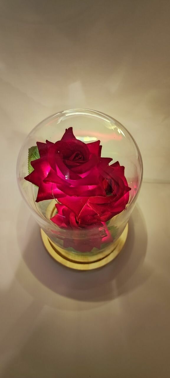 | Подробная комплектация | роза - искусственный шелк, колба - стекло, подставка дерево, подсветка - светодиодная нить |