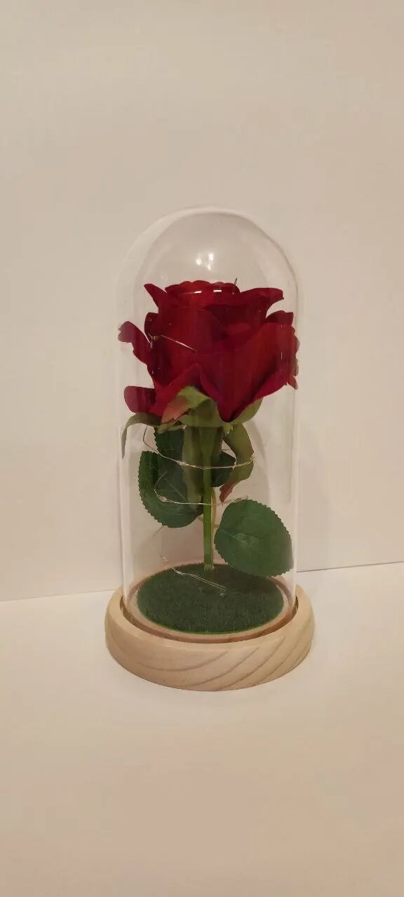 | Подробная комплектация | роза - искусственный шелк, колба - стекло, подставка дерево, подсветка - светодиодная нить |