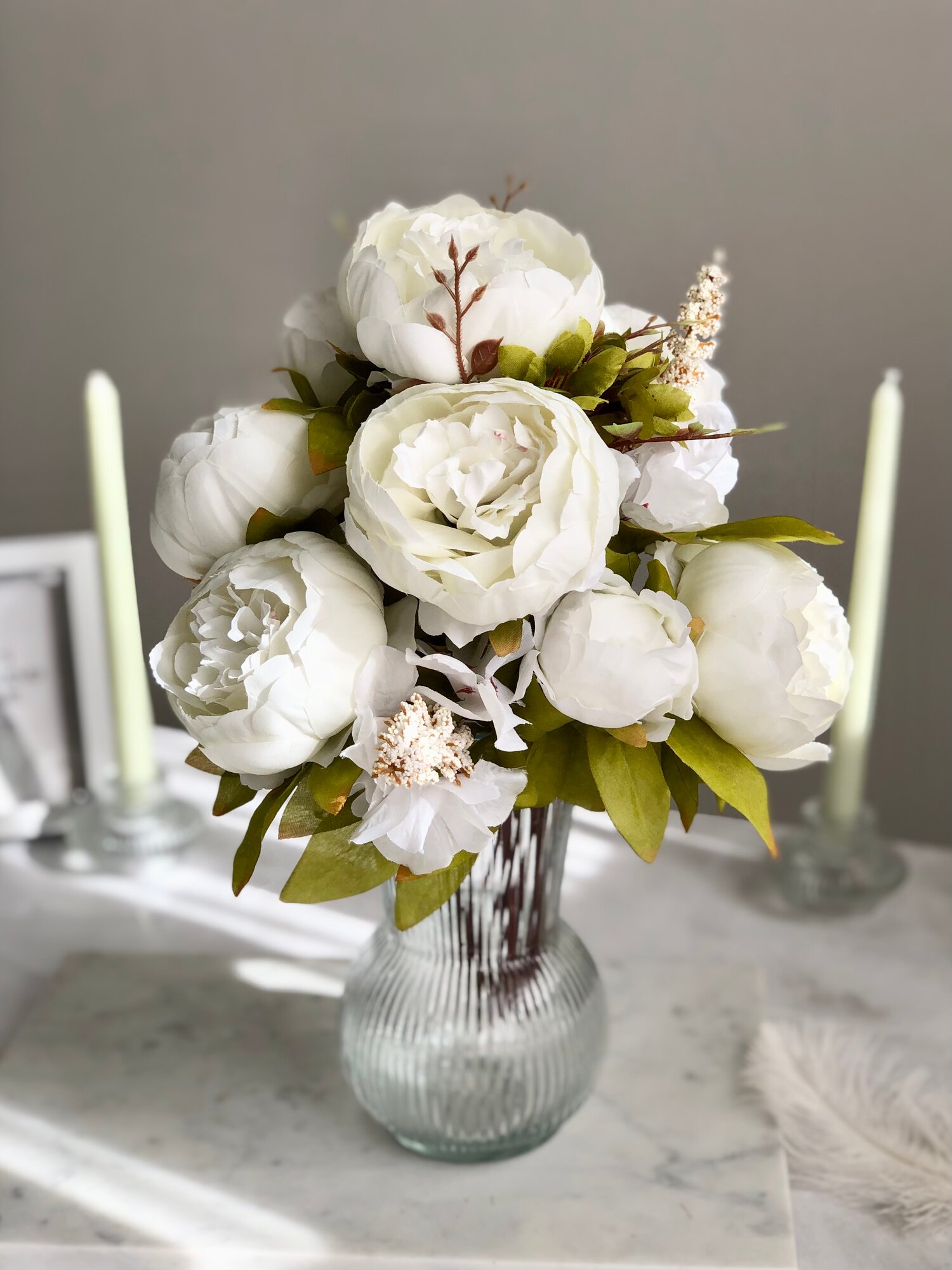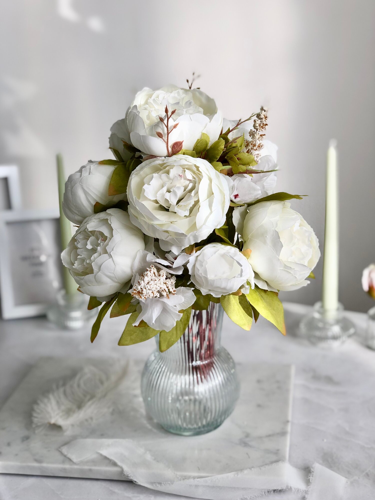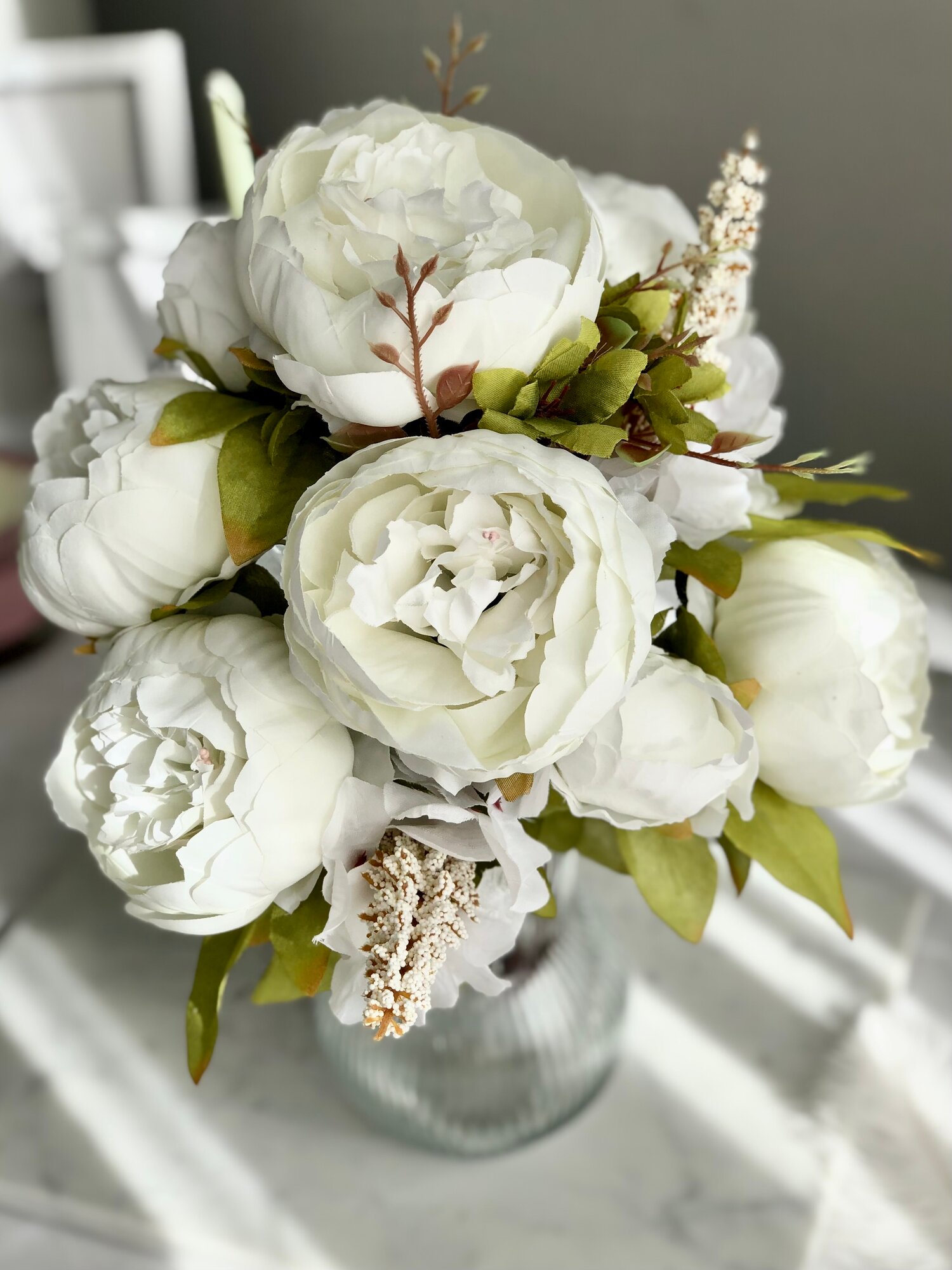 Купить Искусственные цветы пионы для декора / Декоративный букет / Цветочная композиция, 45 см, белый