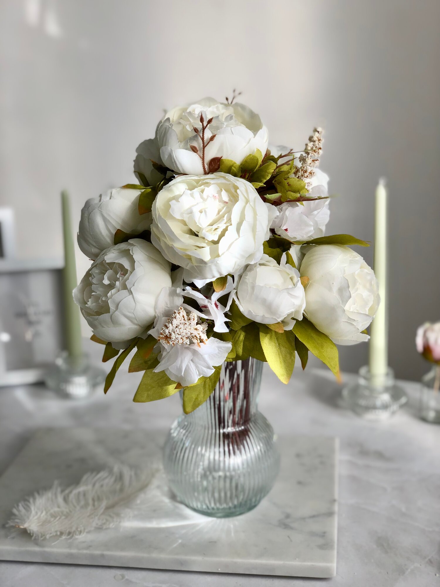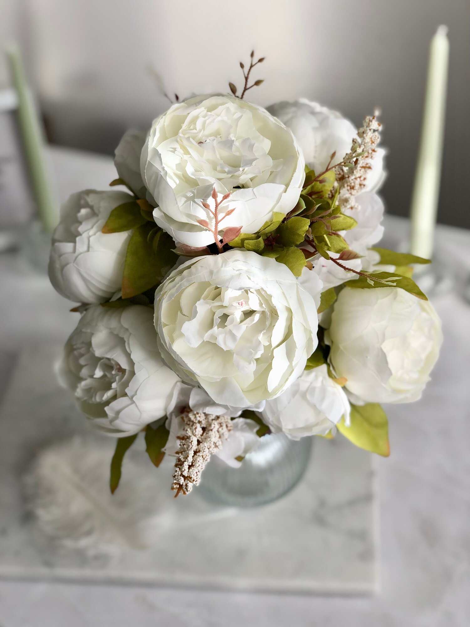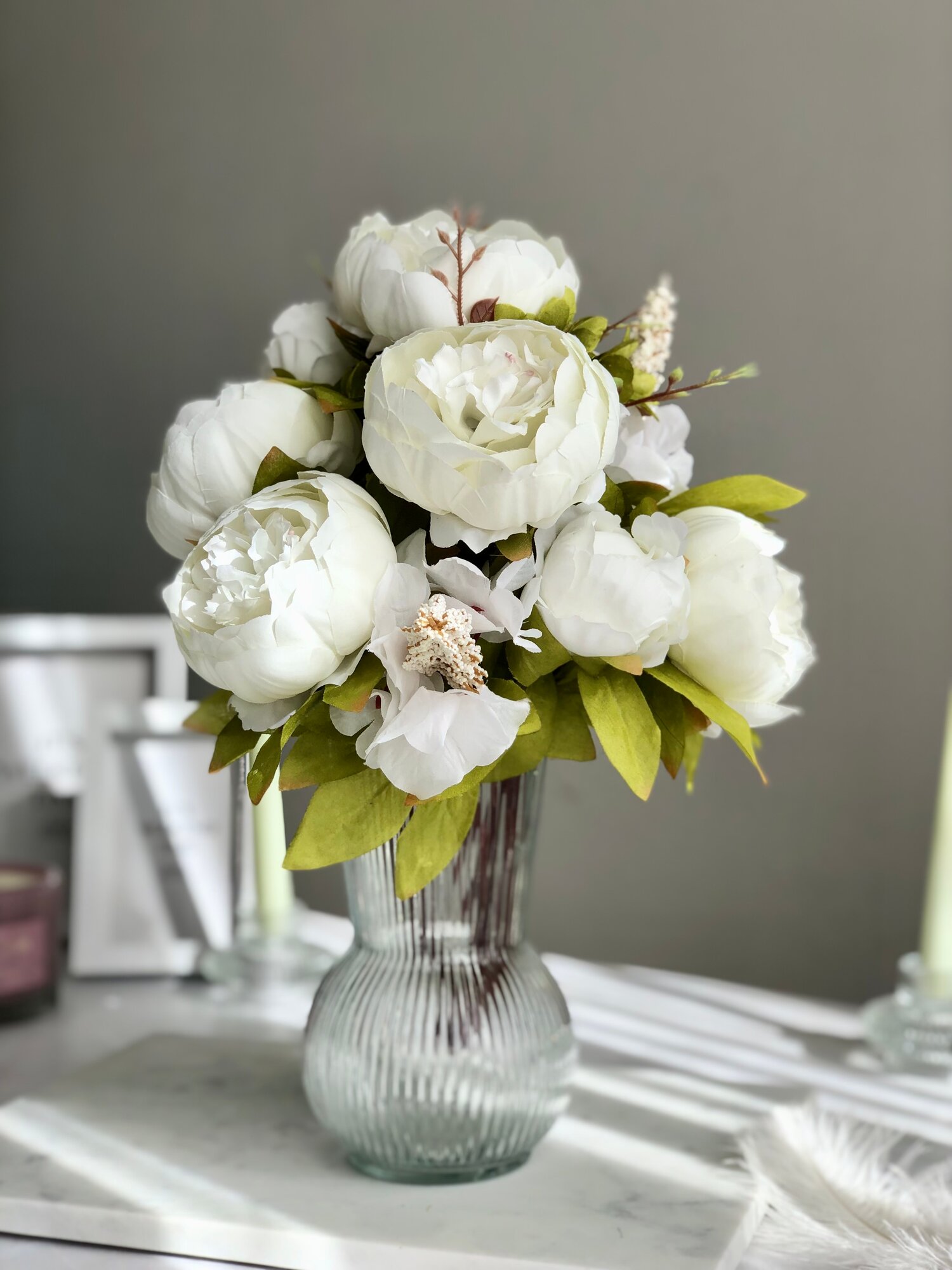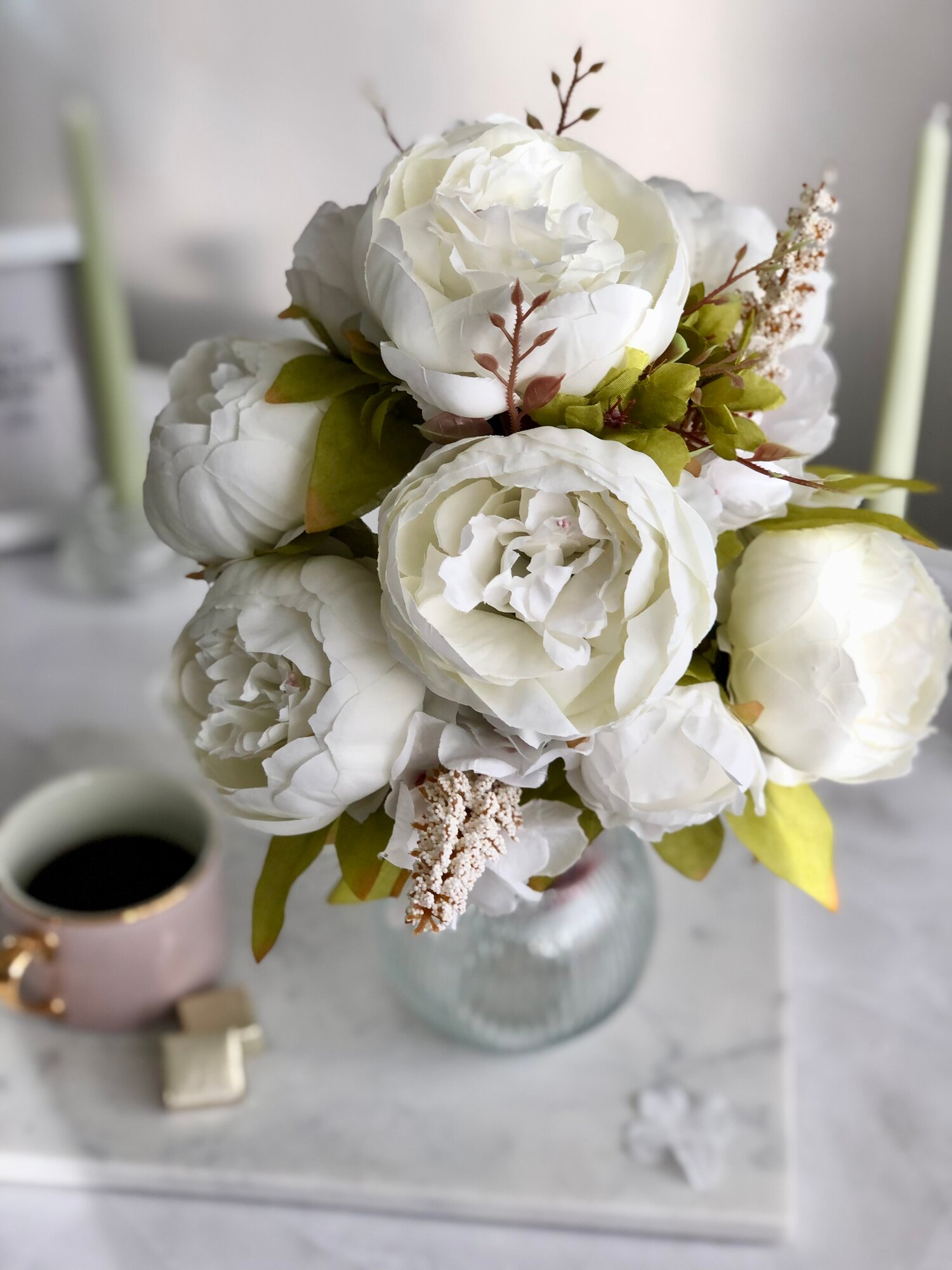 Купить Искусственные цветы пионы для декора / Декоративный букет / Цветочная композиция, 45 см, белый