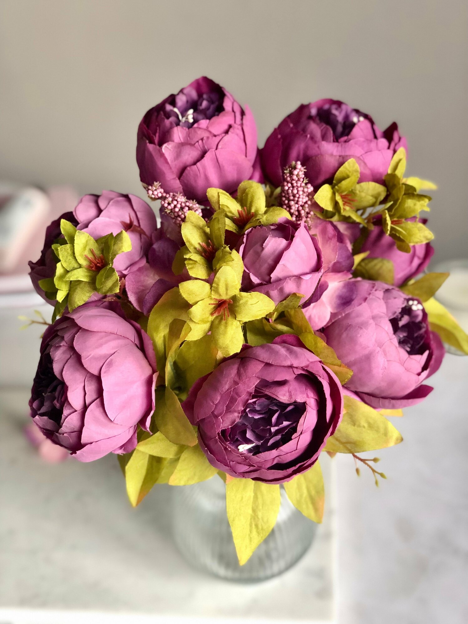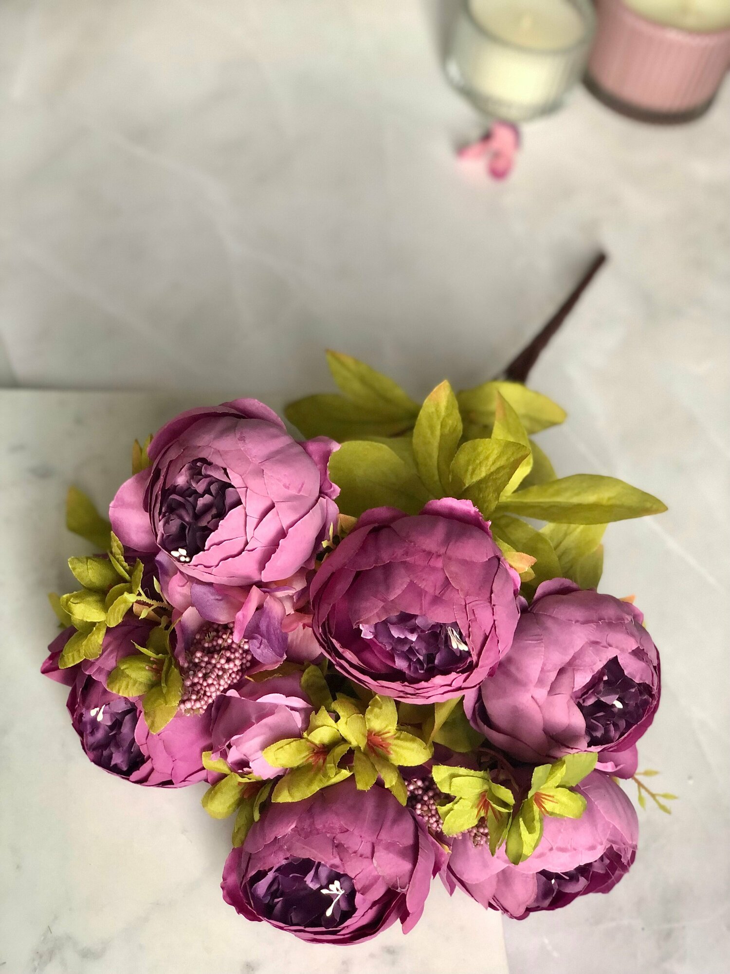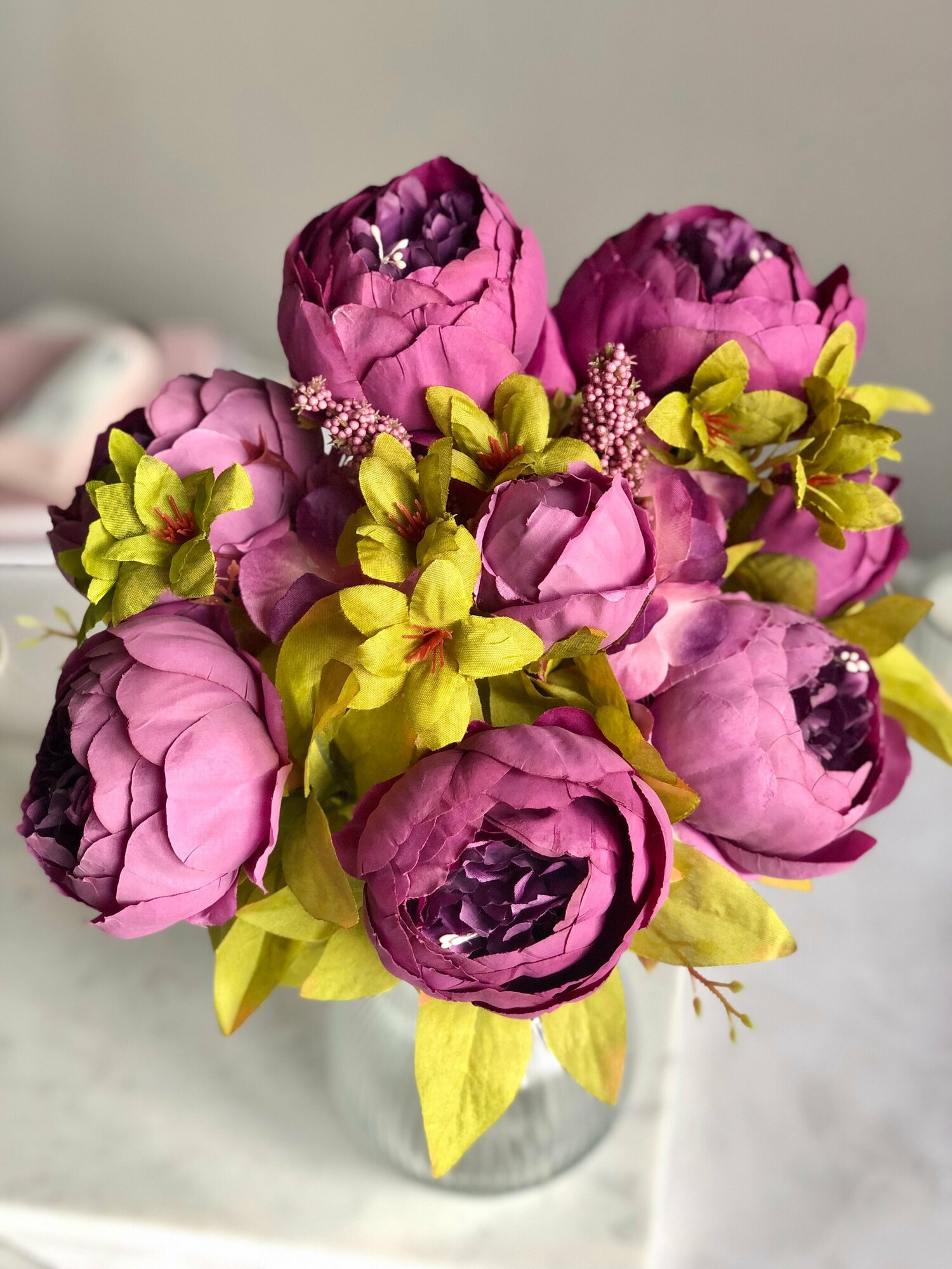 Купить Искусственные цветы пионы для декора / Декоративный букет / Цветочная композиция, 45 см, фиолетовый