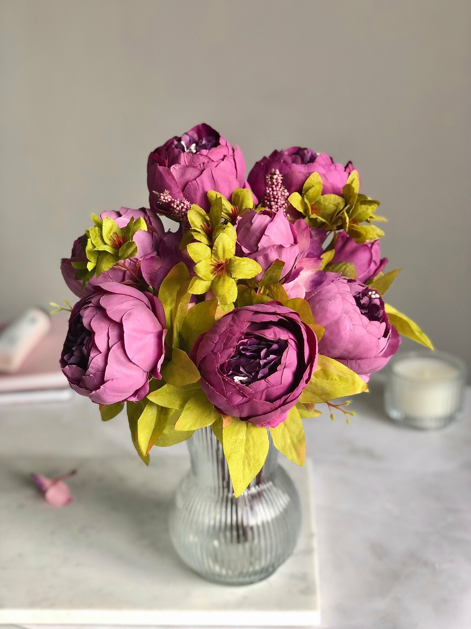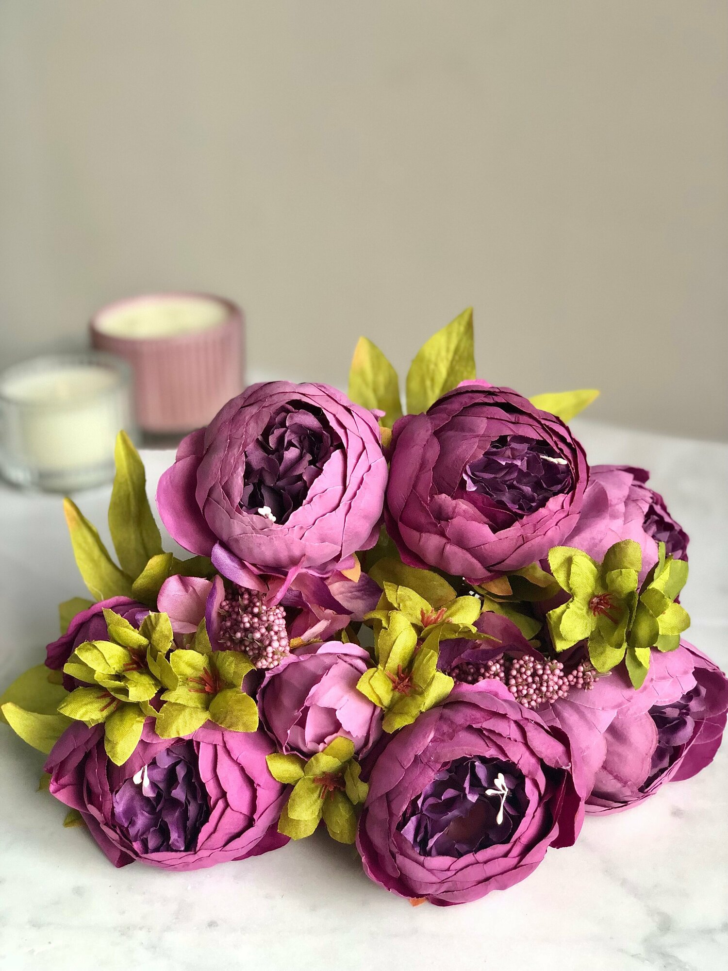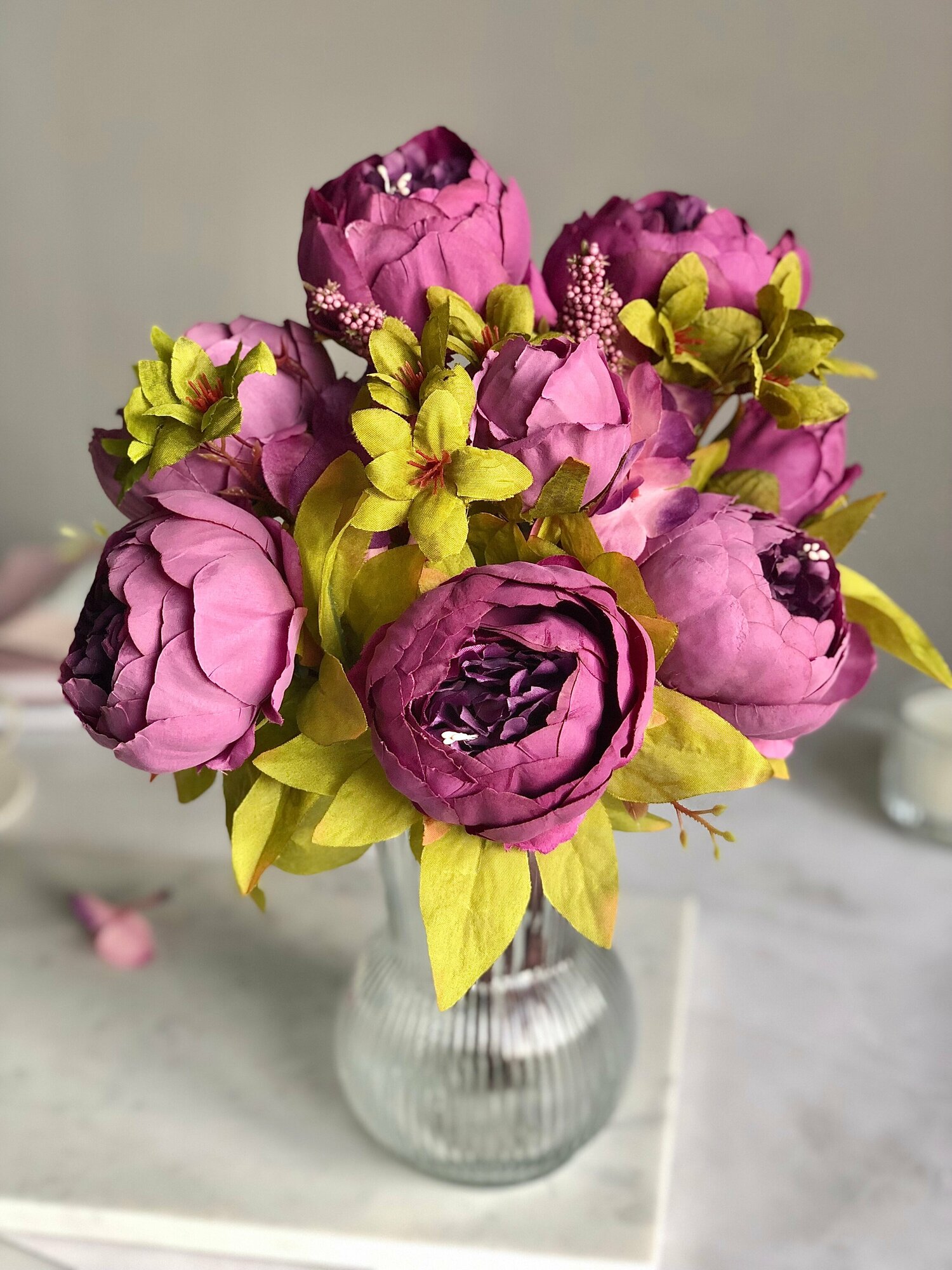 Купить Искусственные цветы пионы для декора / Декоративный букет / Цветочная композиция, 45 см, фиолетовый