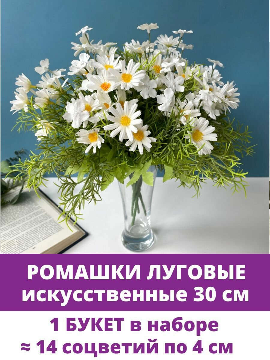 Ромашки искусственные цветы, луговые, 25 цветочных голов, букет 30 см, 1 шт