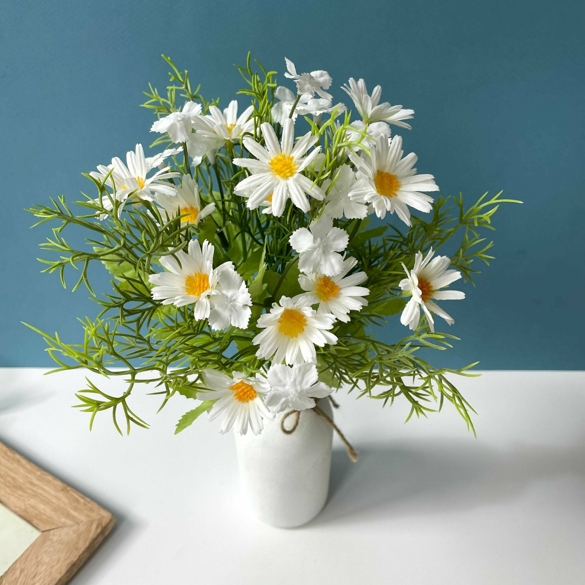 Ромашки искусственные для декора, луговые, белые цветы 2-6 см, букет 50 см, в наборе 2 шт.