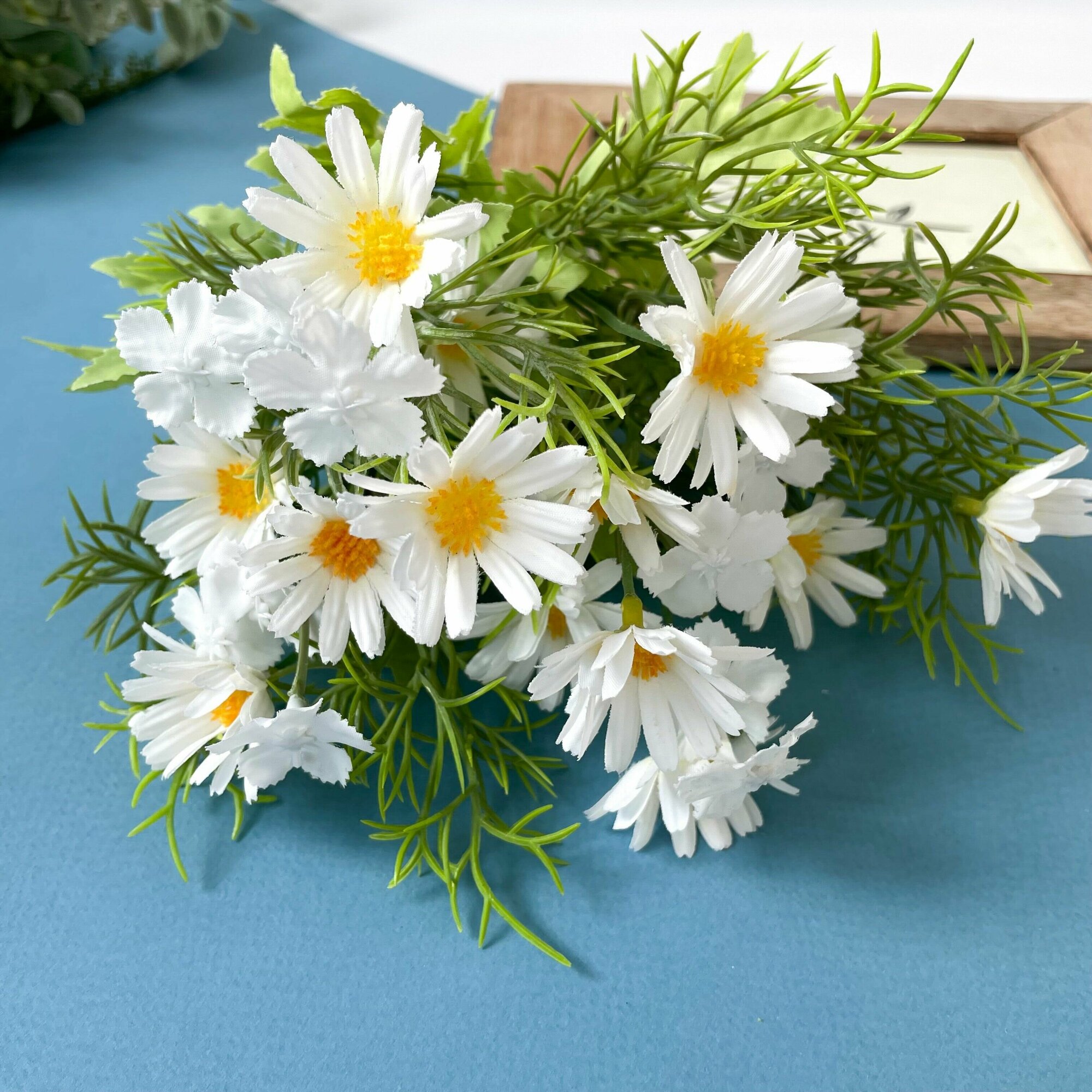 Ромашки искусственные цветы, луговые, Белые, букет 25 см, цветок 2,3 см, в наборе 6 веток.