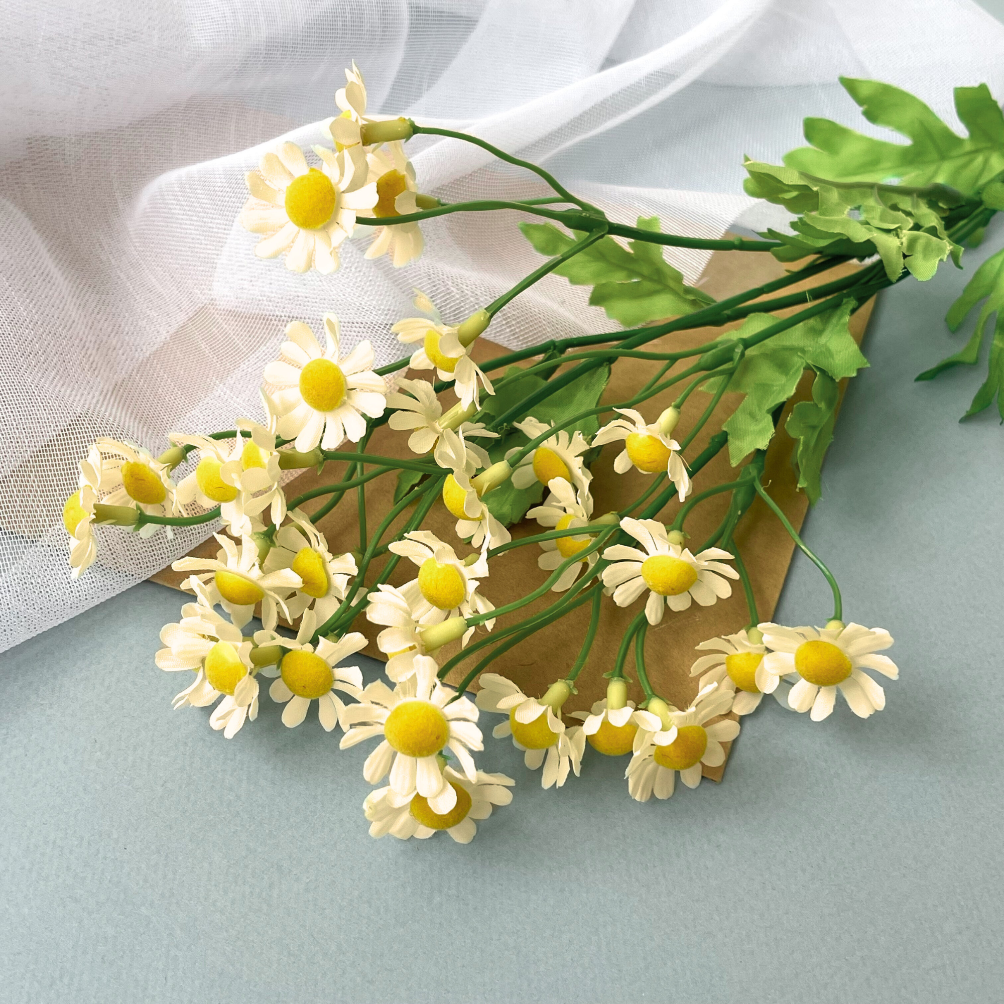 | Подробная комплектация | искусственные ромашки |
