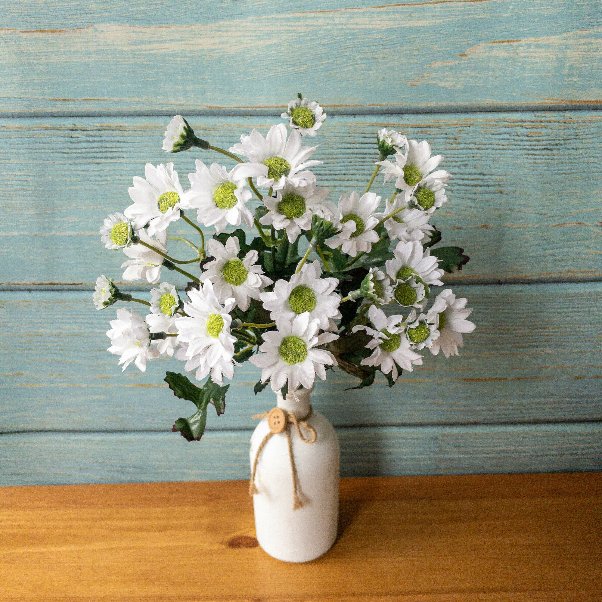Купить Ромашки искусственные для декора, полевые, цветы 1,7 - 3,5 см, букет 35 см, 1 шт.