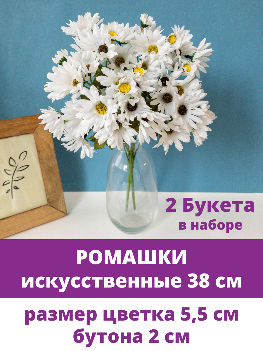 Купить Ромашки искусственные для декора, луговые, цветы 5,5 см, букет 38 см, в наборе 2 шт.