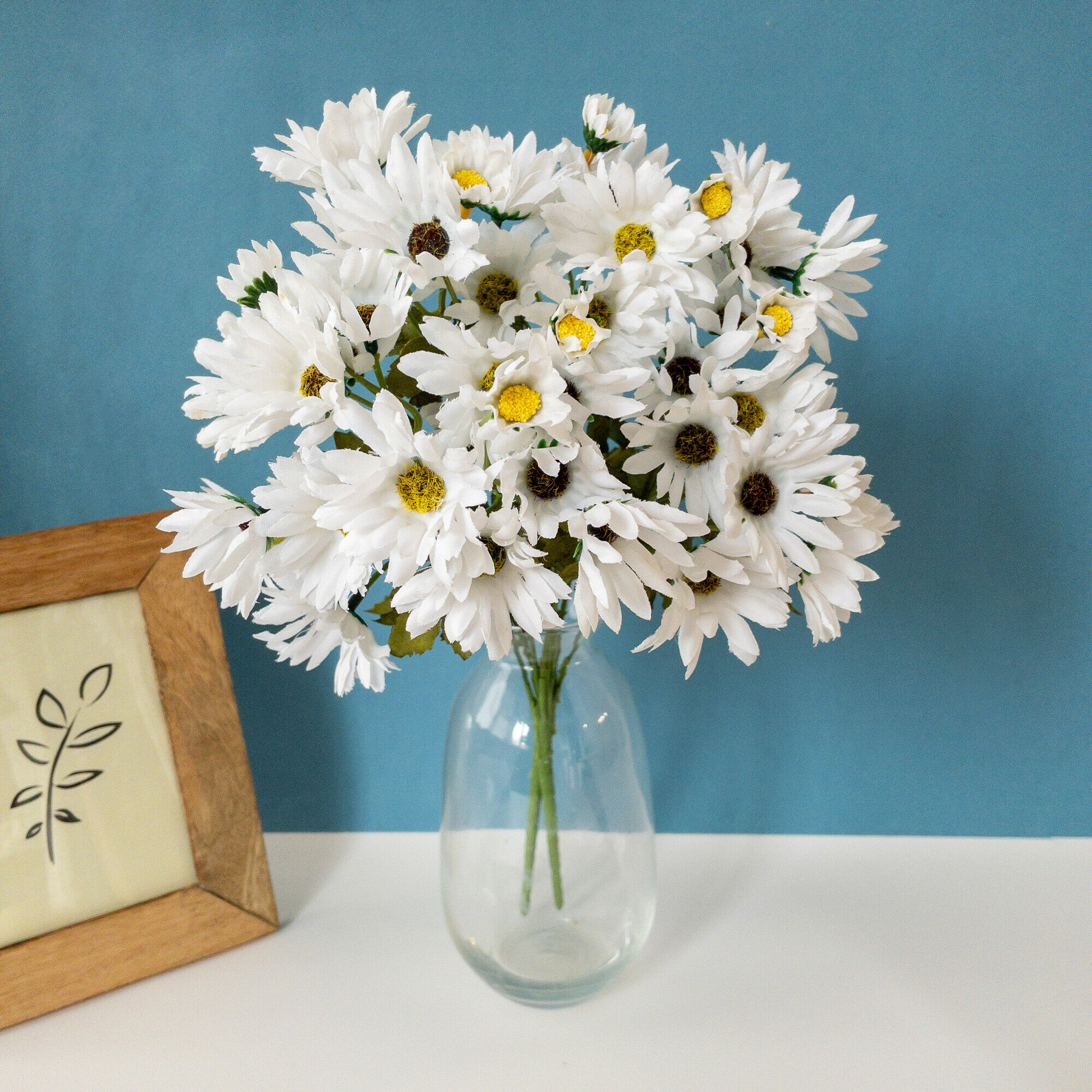 Ромашки искусственные для декора, луговые, белые цветы 2-6 см, букет 50 см, в наборе 2 шт.