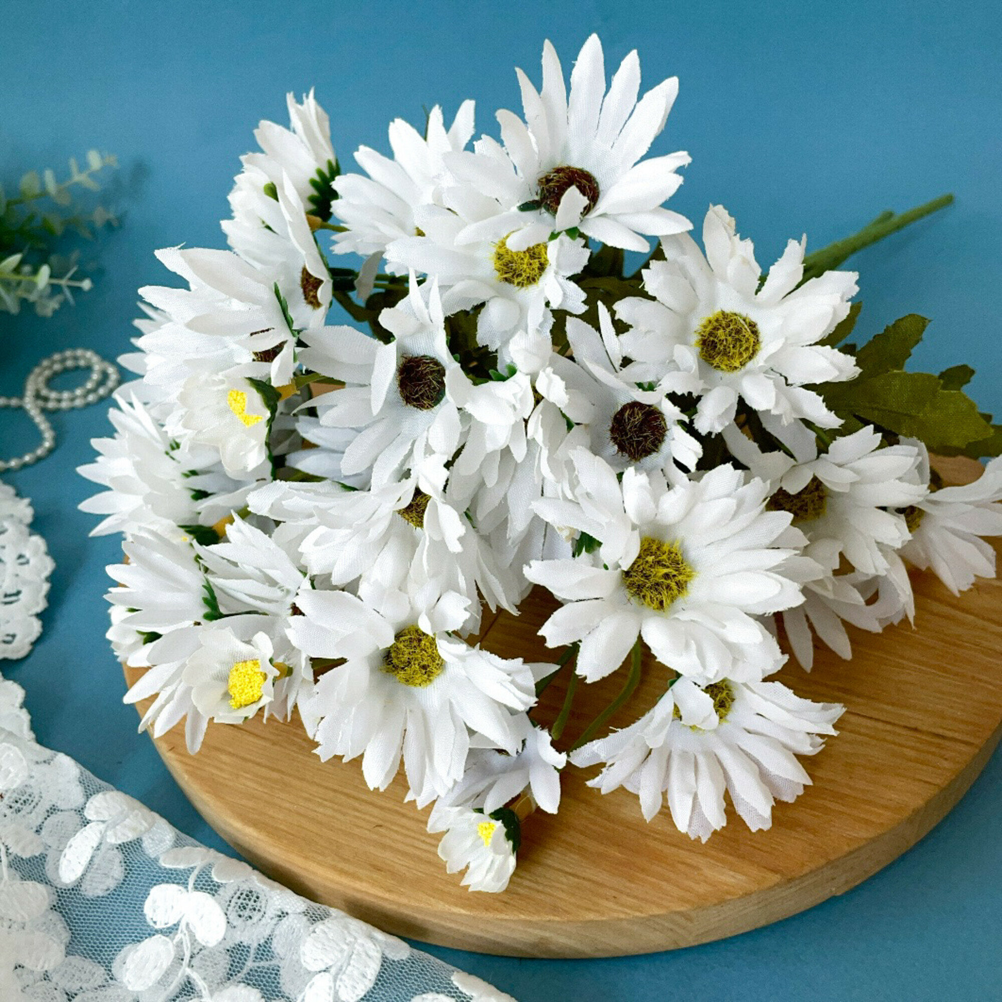 Ромашки белые луговые искусственные, d цветочка - 4 см, букет 30 см, 1 букет.