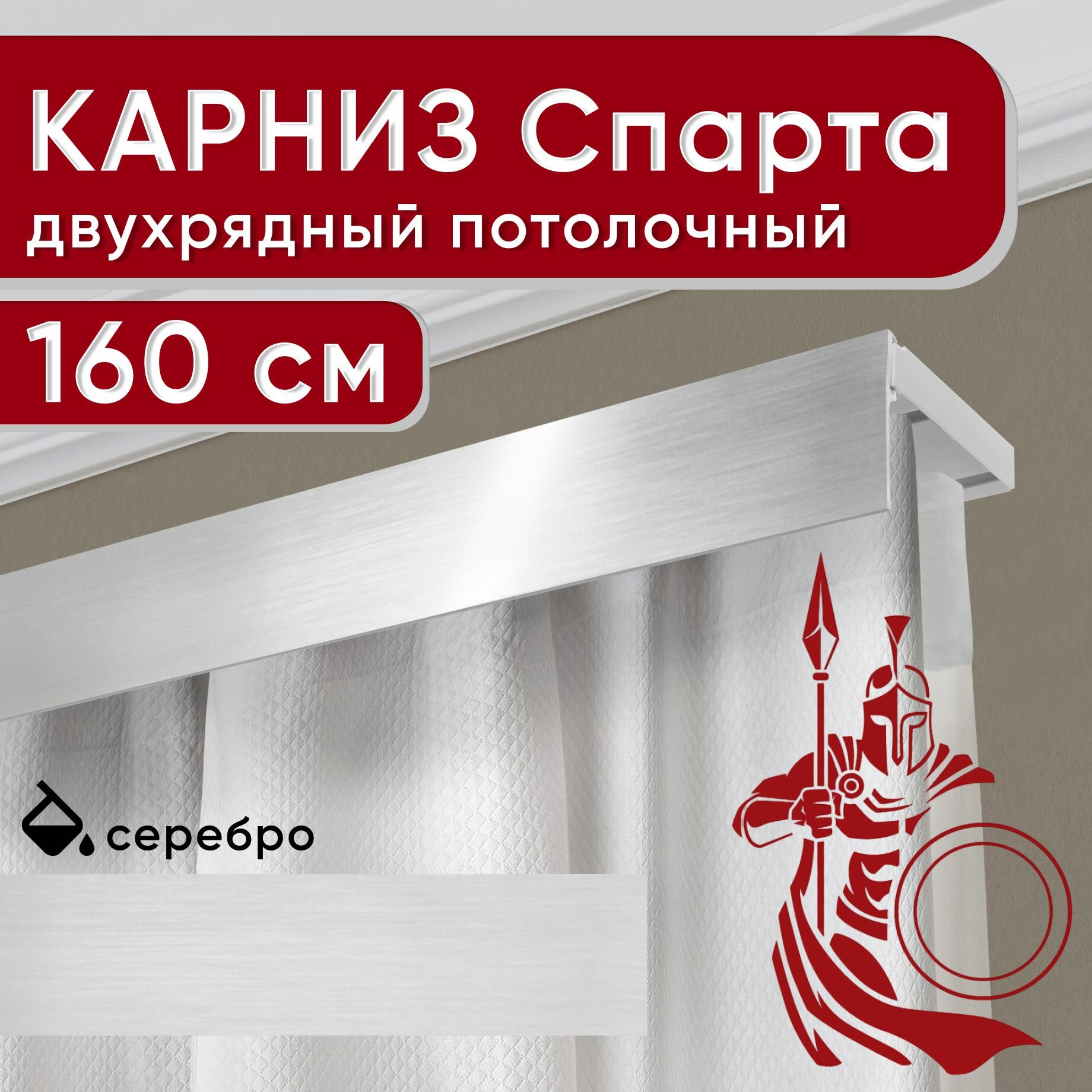 Карниз двухрядный потолочный с декоративной планкой, пластмассовый Спарта, серебро 160 см интересное: