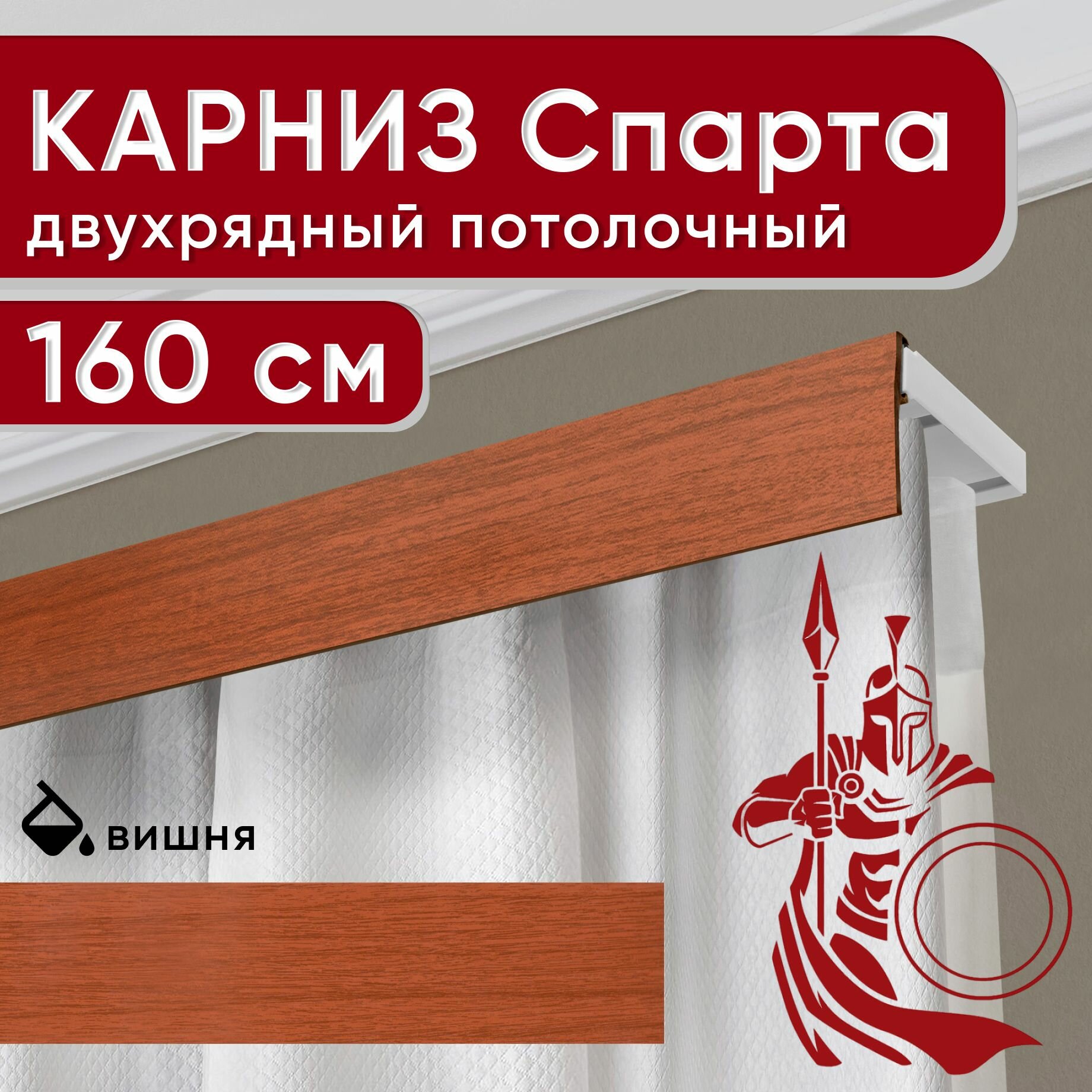 Купить Карниз двухрядный потолочный с декоративной планкой, пластмассовый Спарта, вишня 160 см