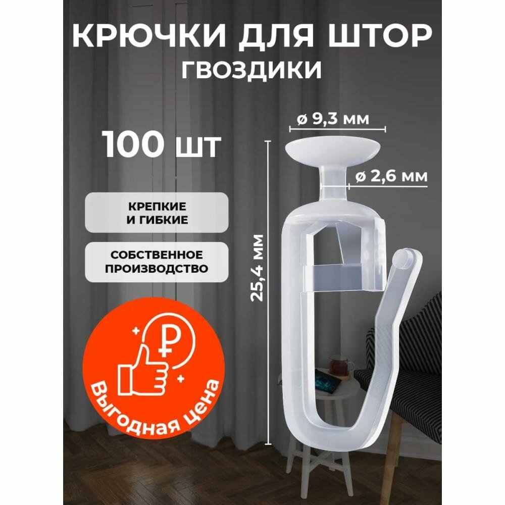 Крючки для штор - Гвоздик 100 штук Для плотных штор
